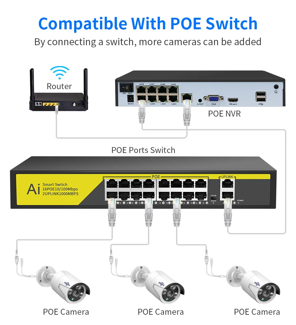 Acest sistem de supraveghere oferă o combinație profesională de calitate a imaginii, hardware robust și gestionare ușor de utilizat. Tehnologia POE permite o instalare curată cu cablare redusă, în timp ce compatibilitatea ONVIF și opțiunile flexibile de stocare facilitează personalizarea pentru a satisface cerințele individuale. Indiferent dacă doriți să vă protejați casa, să monitorizați spațiile comerciale sau să securizați șantierele de construcții, acest sistem oferă înregistrări fiabile, informații audio clare și o gestionare simplă pentru conceptul dumneavoastră de securitate.
