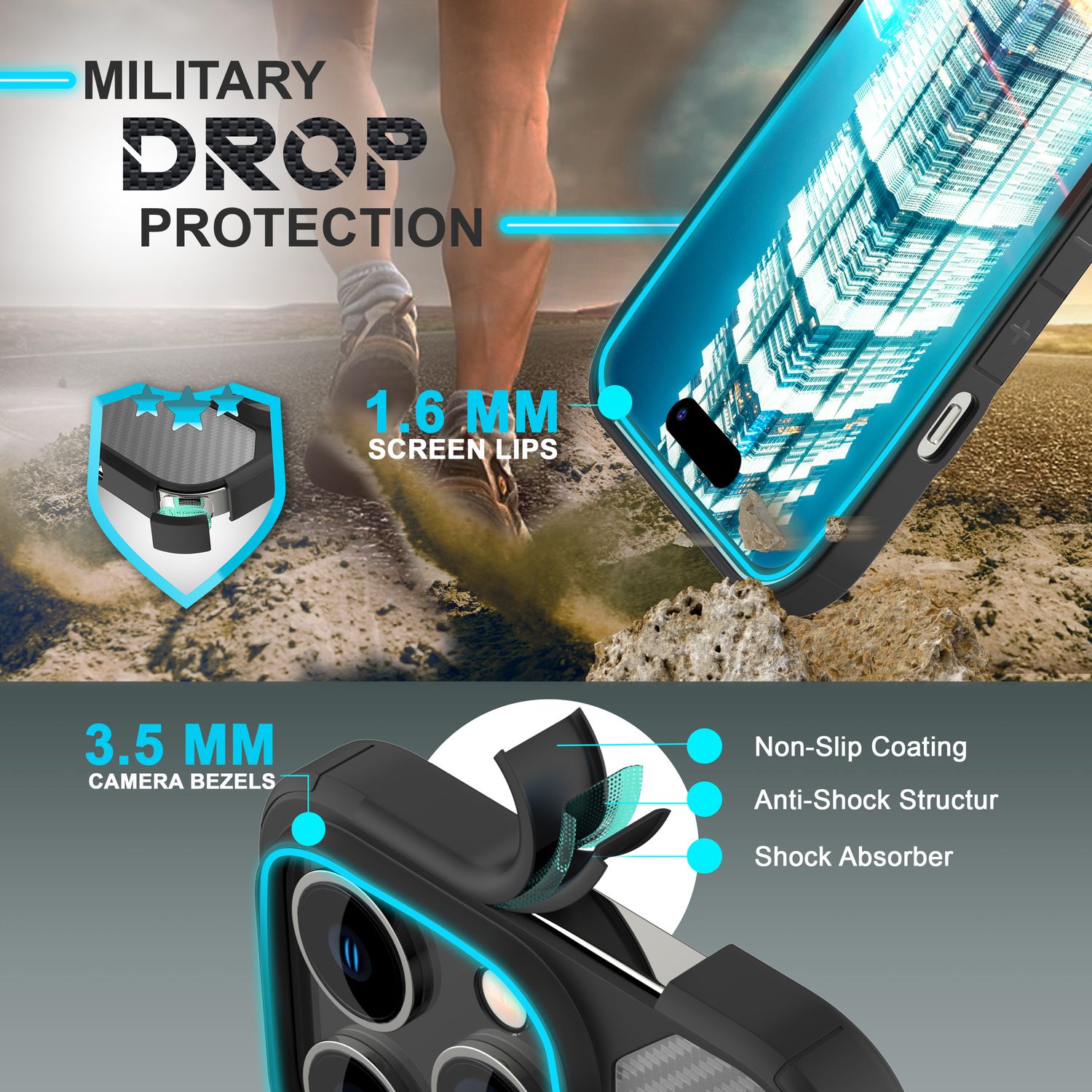 Fabricată din material acrilic dur, carcasa protejează în mod fiabil împotriva zgârieturilor, amprentelor și murdăriei. Rama flexibilă din silicon TPU oferă o absorbție suplimentară a șocurilor datorită unei structuri cu trei straturi care amortizează eficient impactul.