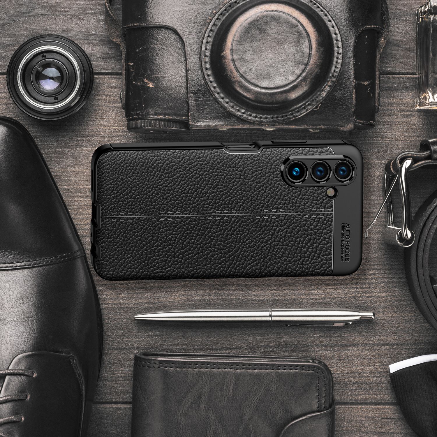 Această husă elegantă de protecție, cu aspect de piele, transformă smartphone-ul tău într-un obiect la modă care atrage toate privirile.