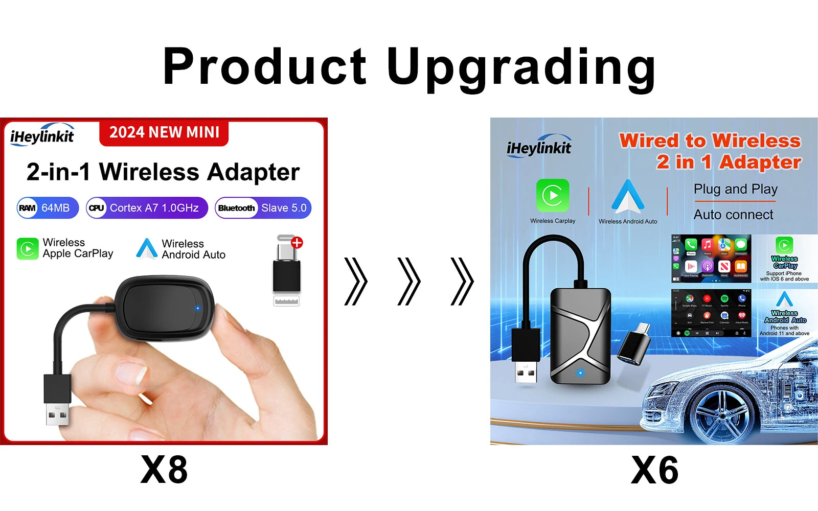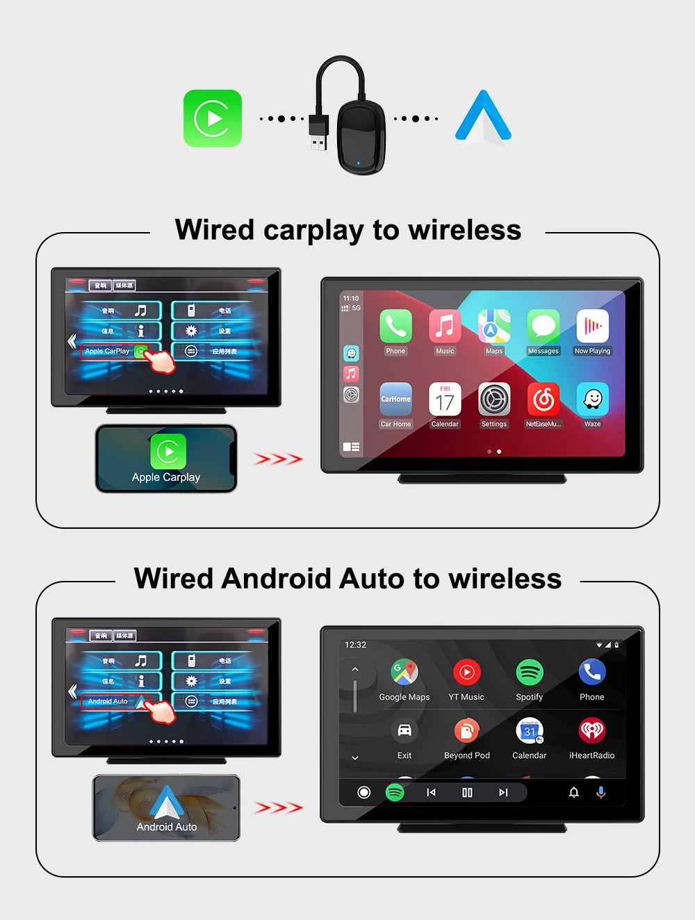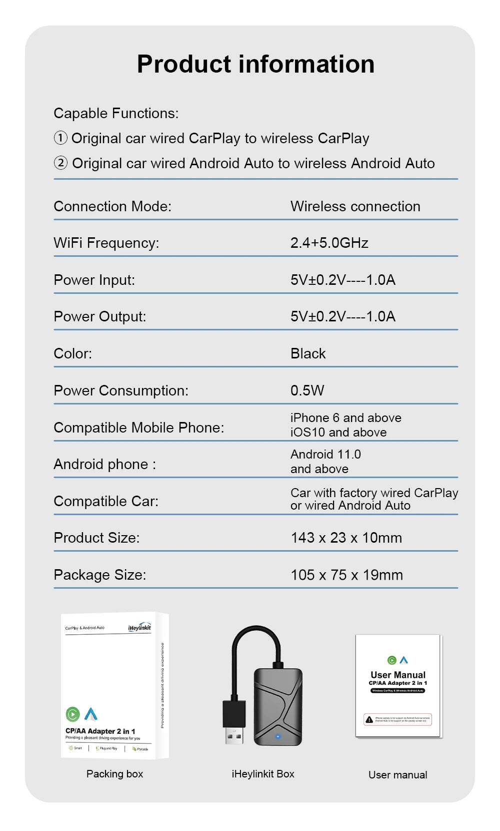 - Adaptor iHeylinkit 2-în-1 mini wireless CarPlay și Android Auto