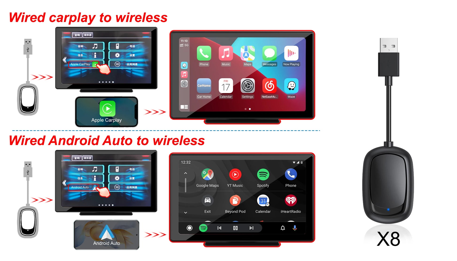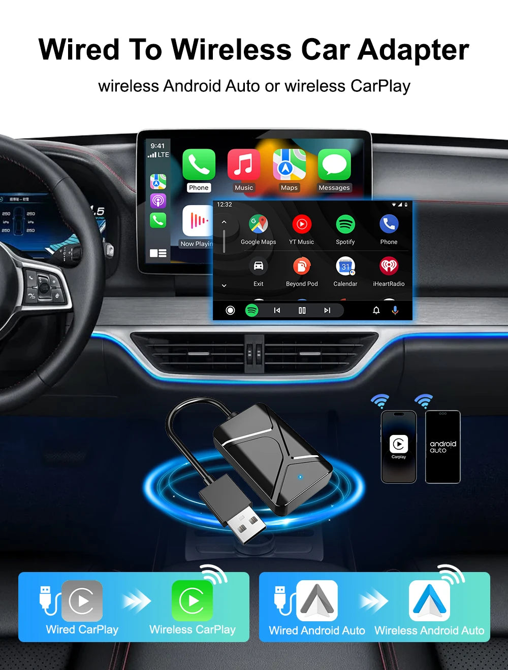 Experimentați conectivitate wireless și operare intuitivă în vehicul: conexiune rapidă, transmisie stabilă și compatibilitate completă cu majoritatea modelelor de vehicule.