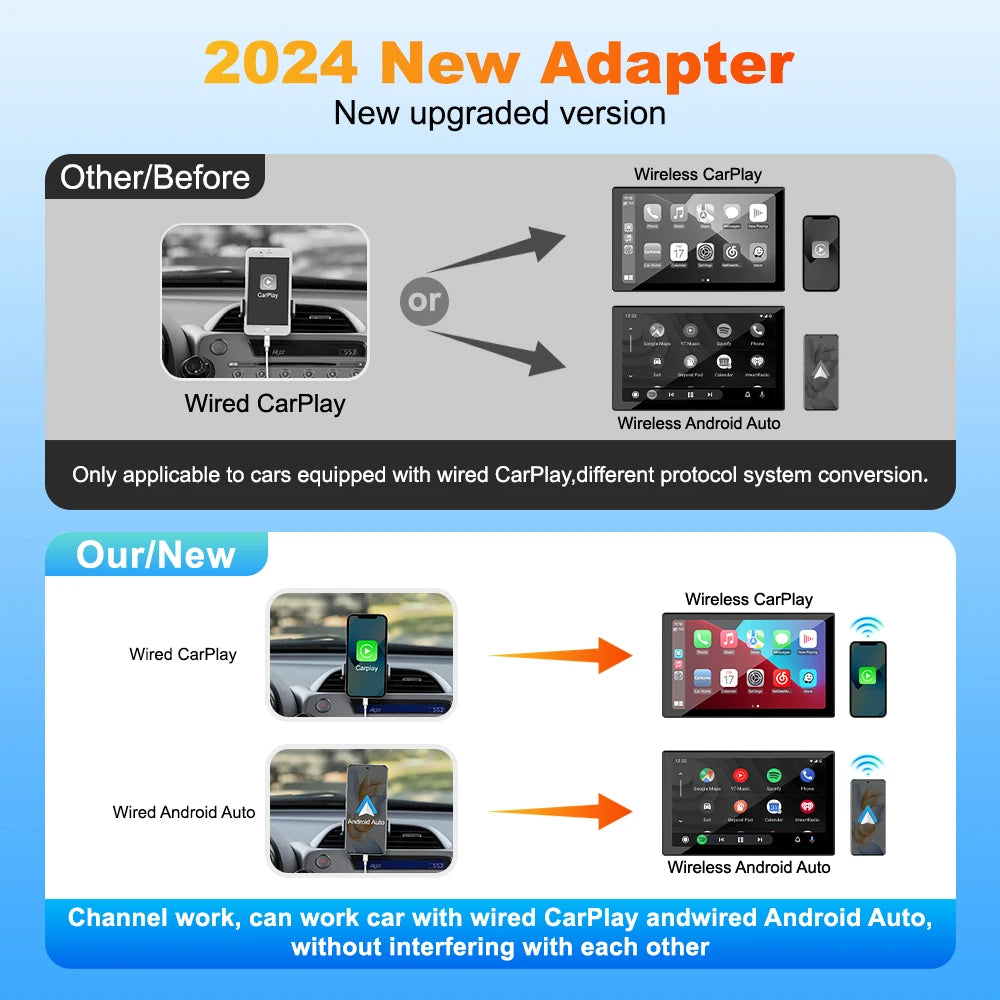 IHeylinkit 2024 Nou Adaptor Wireless 2 în 1 Mini Carplay Android Auto Conectivitate inteligentă pentru majoritatea modelelor de vehicule