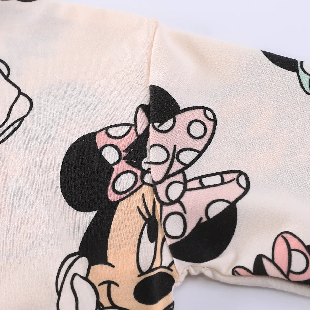 - Motiv clasic Minnie combinat cu accente moderne de culoare pentru un aspect atrăgător și prietenos cu copiii.