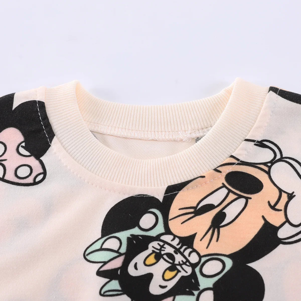 Ținută elegantă și practică din două piese, cu motiv Minnie: bumbac moale și o croială bine gândită pentru confort pe tot parcursul zilei și îngrijire ușoară.