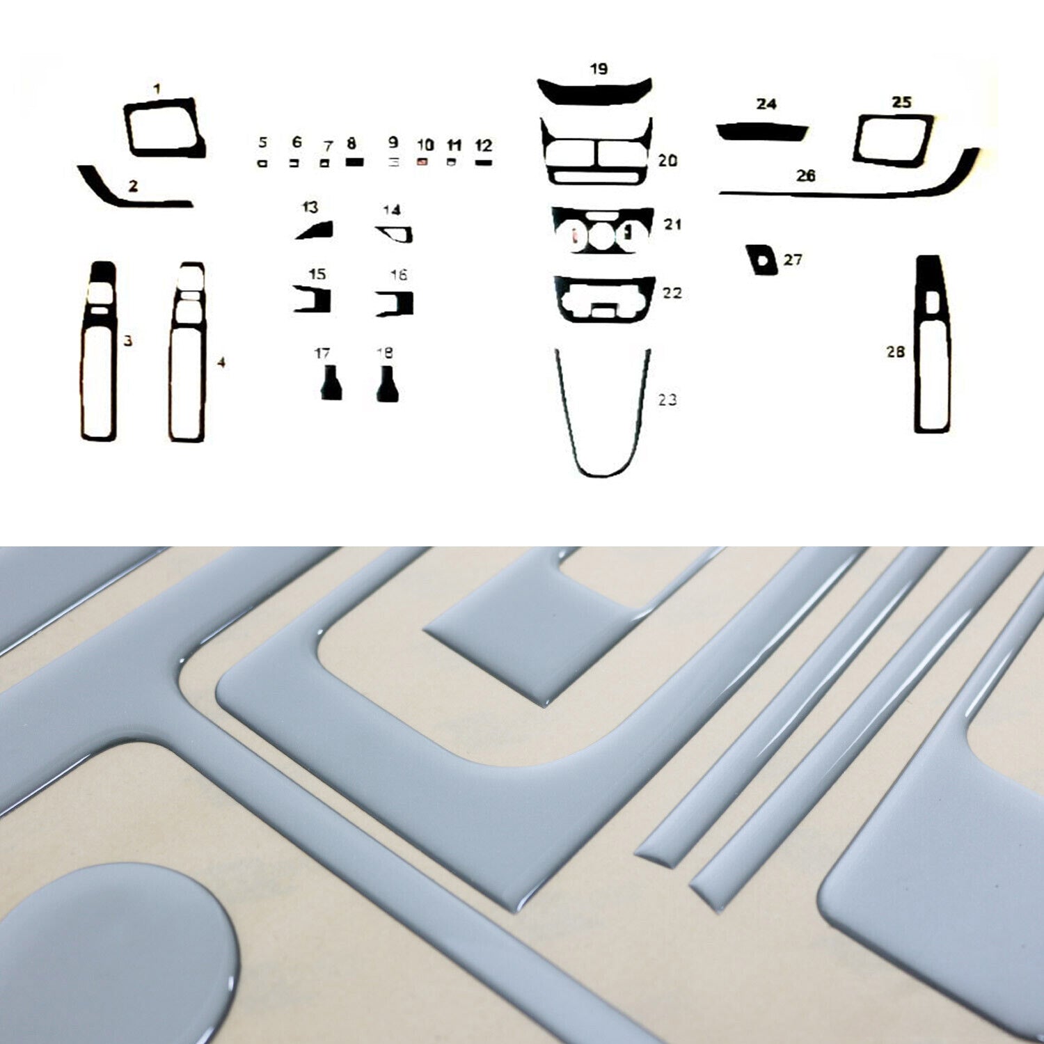Ornamente interioare cockpit pentru Fiat Doblo 2010-2014, aspect aluminiu, 28 bucăți