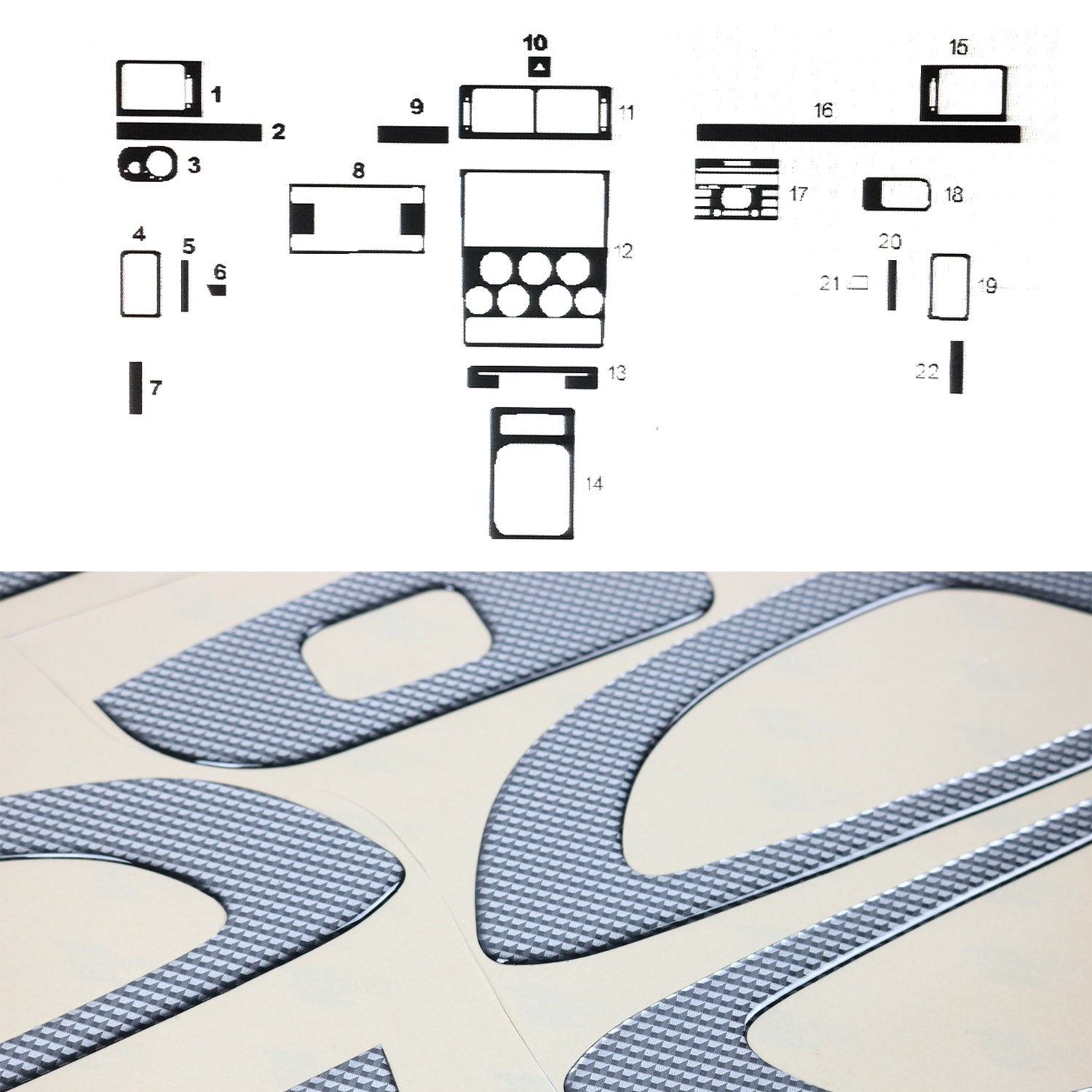 Ornamente interioare pentru cockpit pentru Ford Transit Connect 2007-2009, aspect carbon, 22 bucăți