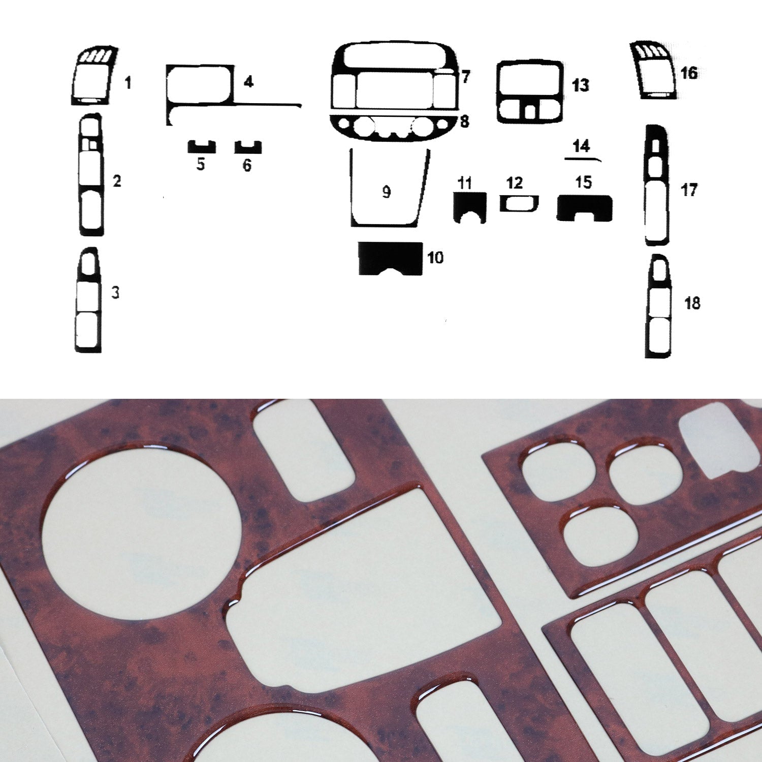 Ornamente interioare pentru Toyota Camry 2001-2006, aspect lemn, 18 bucăți