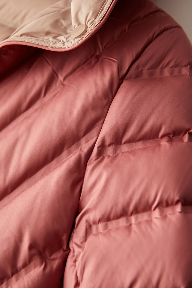 Paltonul Janveny Ultralight Down combină căldura ușoară cu un design versatil și reversibil - ideal pentru femeile care caută confort, stil și funcționalitate într-un singur palton.