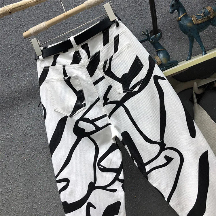 Blugi pentru femei 2025 - Stil streetwear la modă, imprimeu graffiti, talie înaltă, spălat, larg, drept