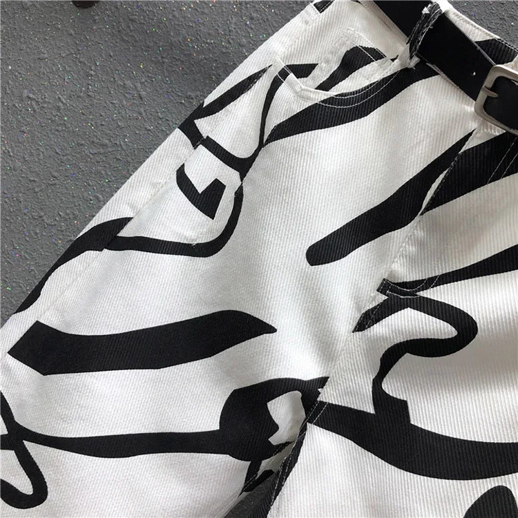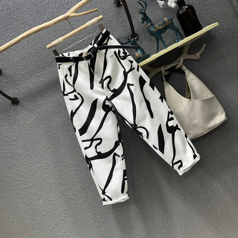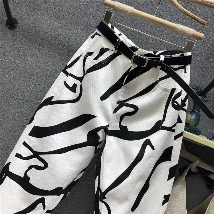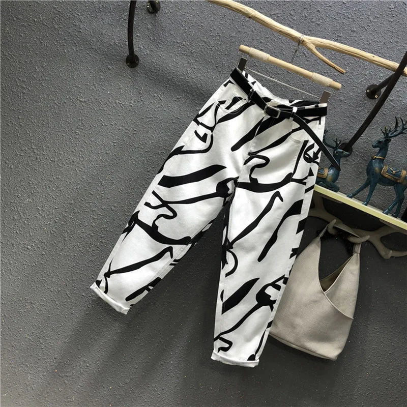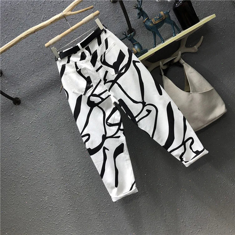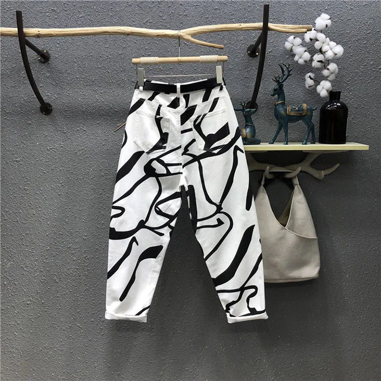 Blugi pentru femei - Modă streetwear cu imprimeu graffiti pentru confort urban
