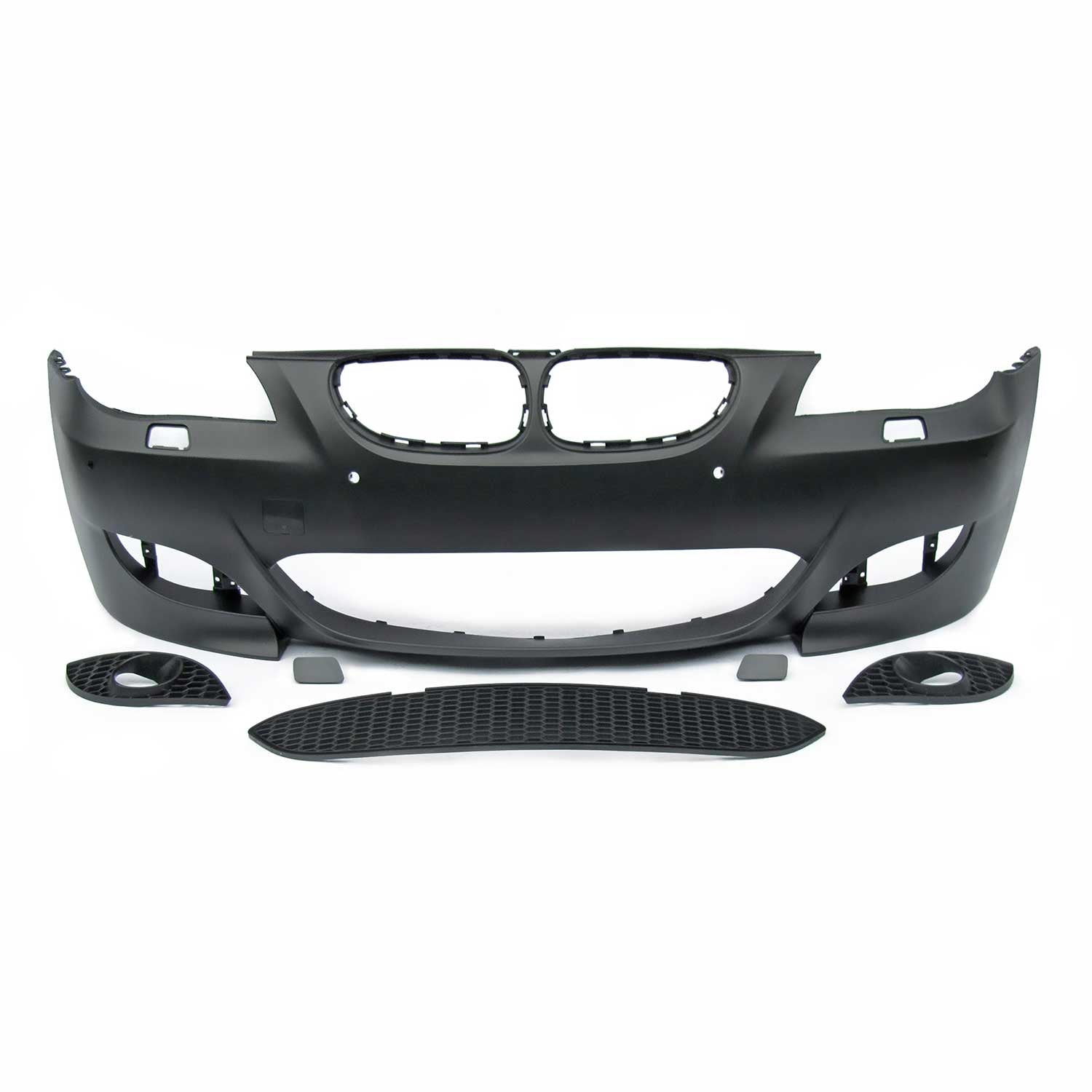 Aspect sportiv pentru BMW Seria 5. Pentru vehicule cu spălătoare de faruri și senzori de parcare. Bara de protecție față este fabricată din plastic vopsibil, rezistent la spargere și impact. bara de protecție față sportivă și dinamică din plastic vopsibil, rezistentă la spargere și impact Decupaje pentru proiectoarele de ceață cu grătar cu aspect de fagure de miere Decupaje cu capac pentru spălătoare de faruri, cu senzori de parcare Pachet Sportiv