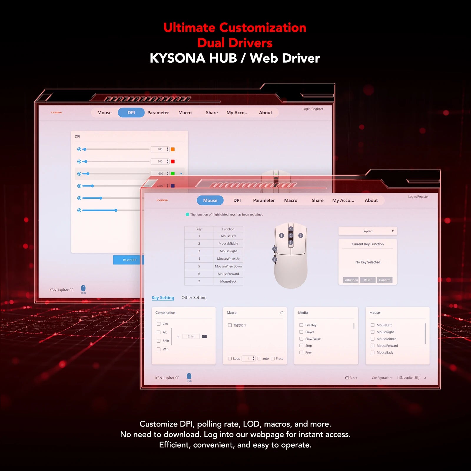 Experimentați controlul precis și timpii de răspuns extrem de rapizi cu Kysona Jupiter – mouse-ul de gaming ușor, de înaltă rezoluție, pentru performanță maximă.