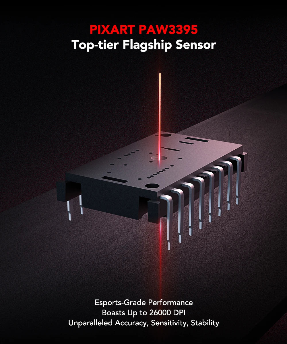 - Senzorul de 26.000 DPI permite ajustări fine ale vitezei indicatorului, oferindu-vă un avantaj decisiv în fiecare joc.