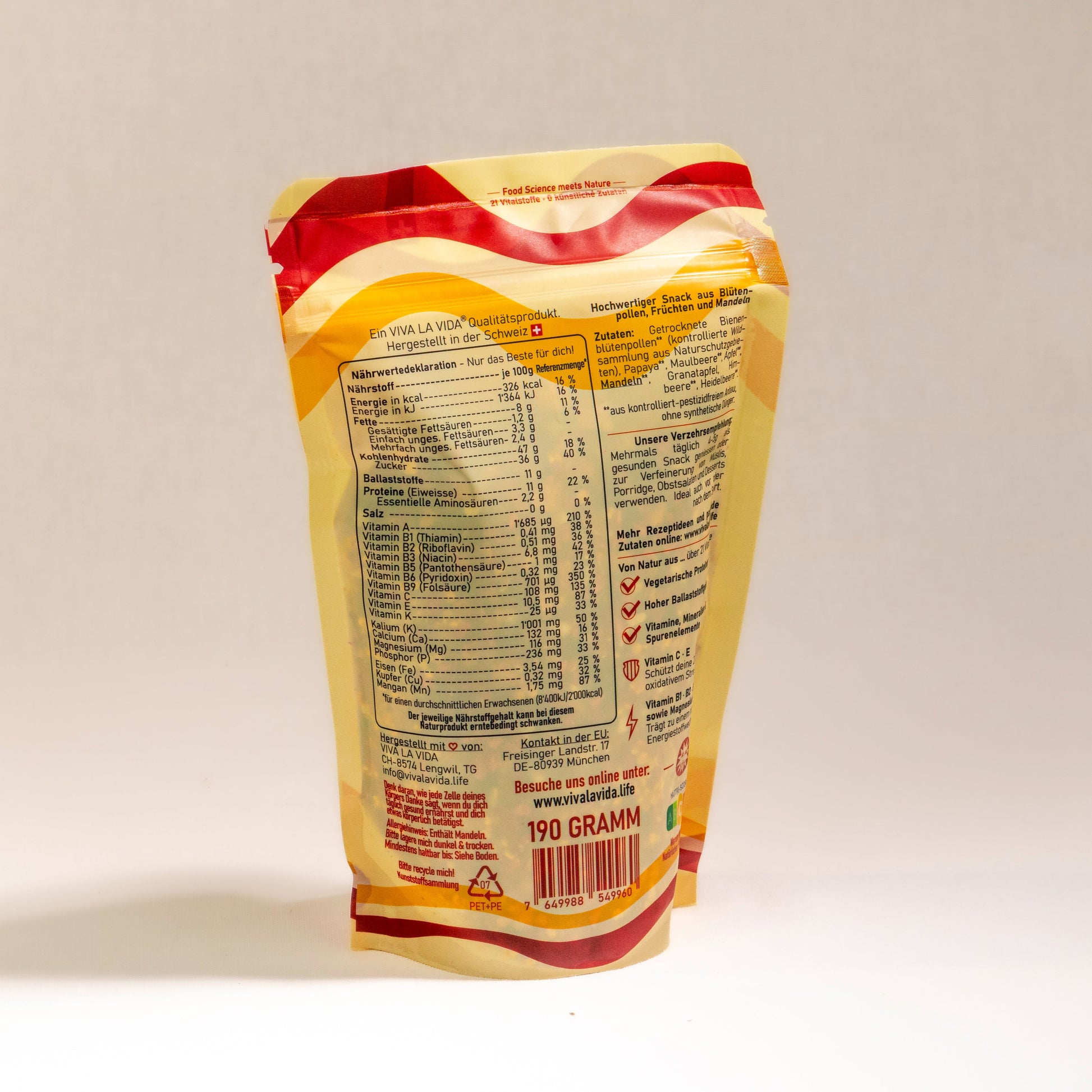 - Nume produs: LA VIDA FlowerPower Gustare naturală cu polen de flori