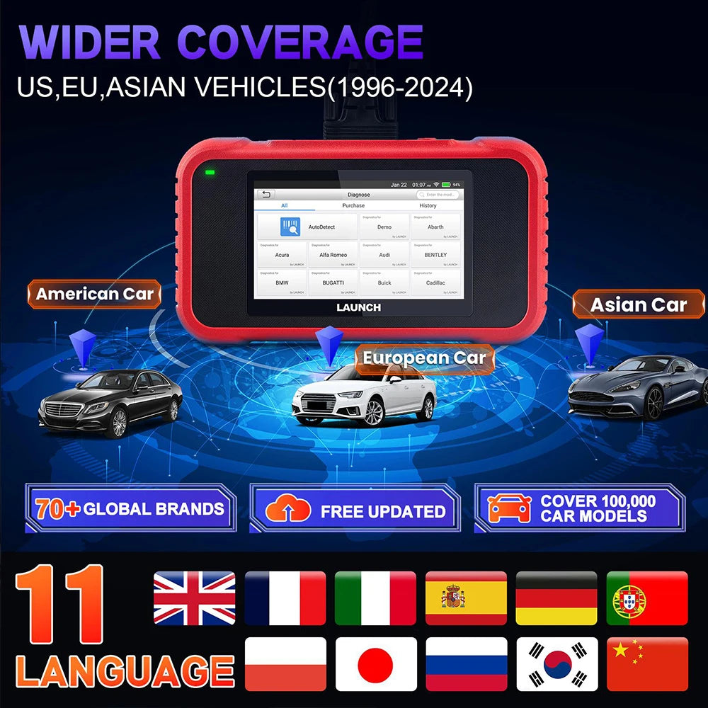 LAUNCH X431 CRP129E este un instrument de diagnosticare puternic din gama de scanere de diagnosticare pentru vehicule, special conceput pentru cerințele de întreținere și reparare a vehiculelor moderne. Acesta combină funcțiile de diagnosticare profesionale cu ușurința în utilizare și un design robust pentru a face munca zilnică în ateliere mai eficientă și a accelera procesele de depanare și reparare.