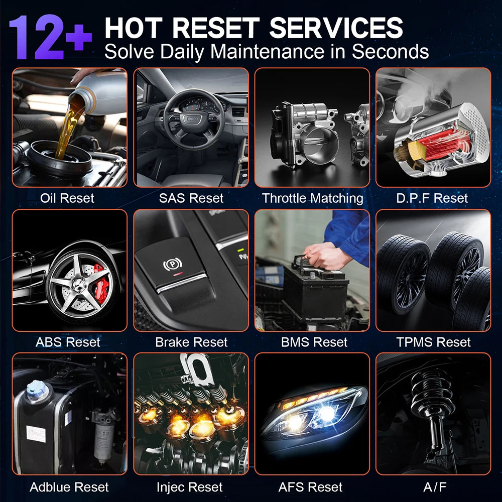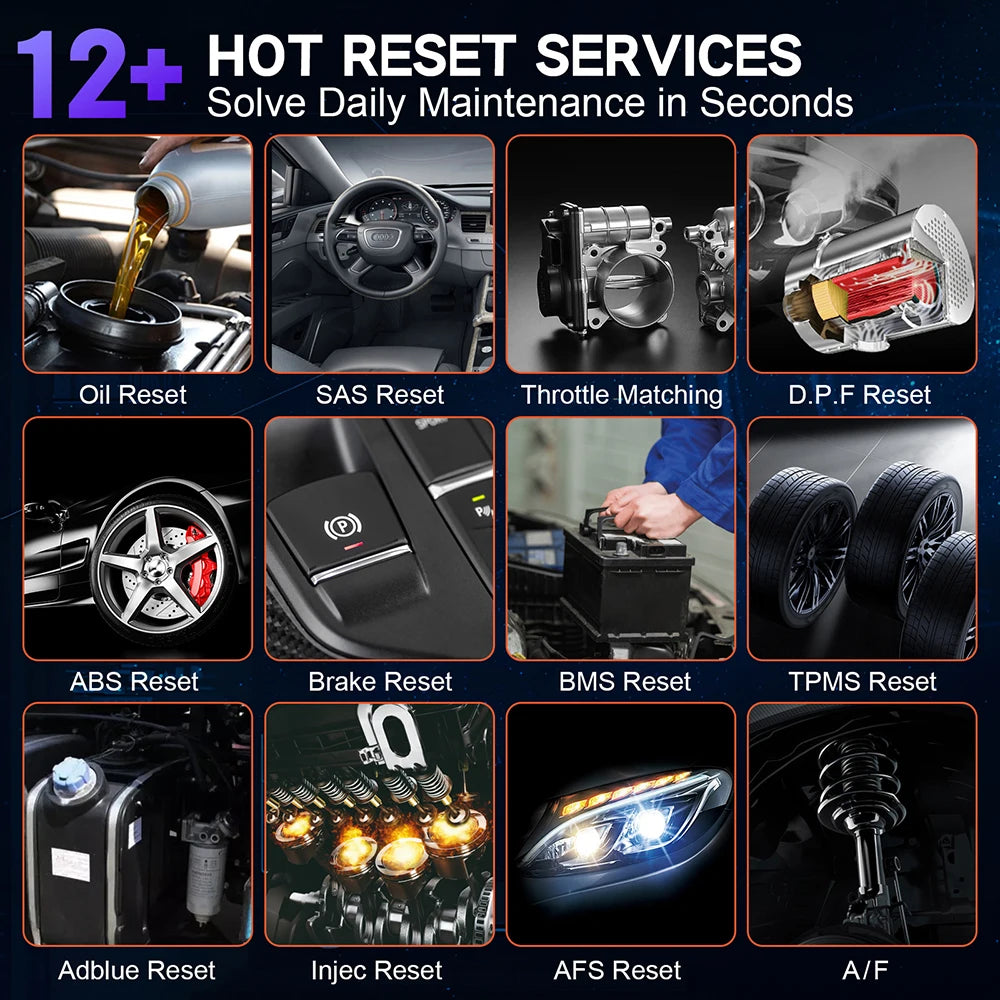 - Citirea și ștergerea codurilor de eroare (DTC) pentru motor, transmisie, ABS și airbag – identificare clară a defecțiunilor pentru o depanare mai rapidă.