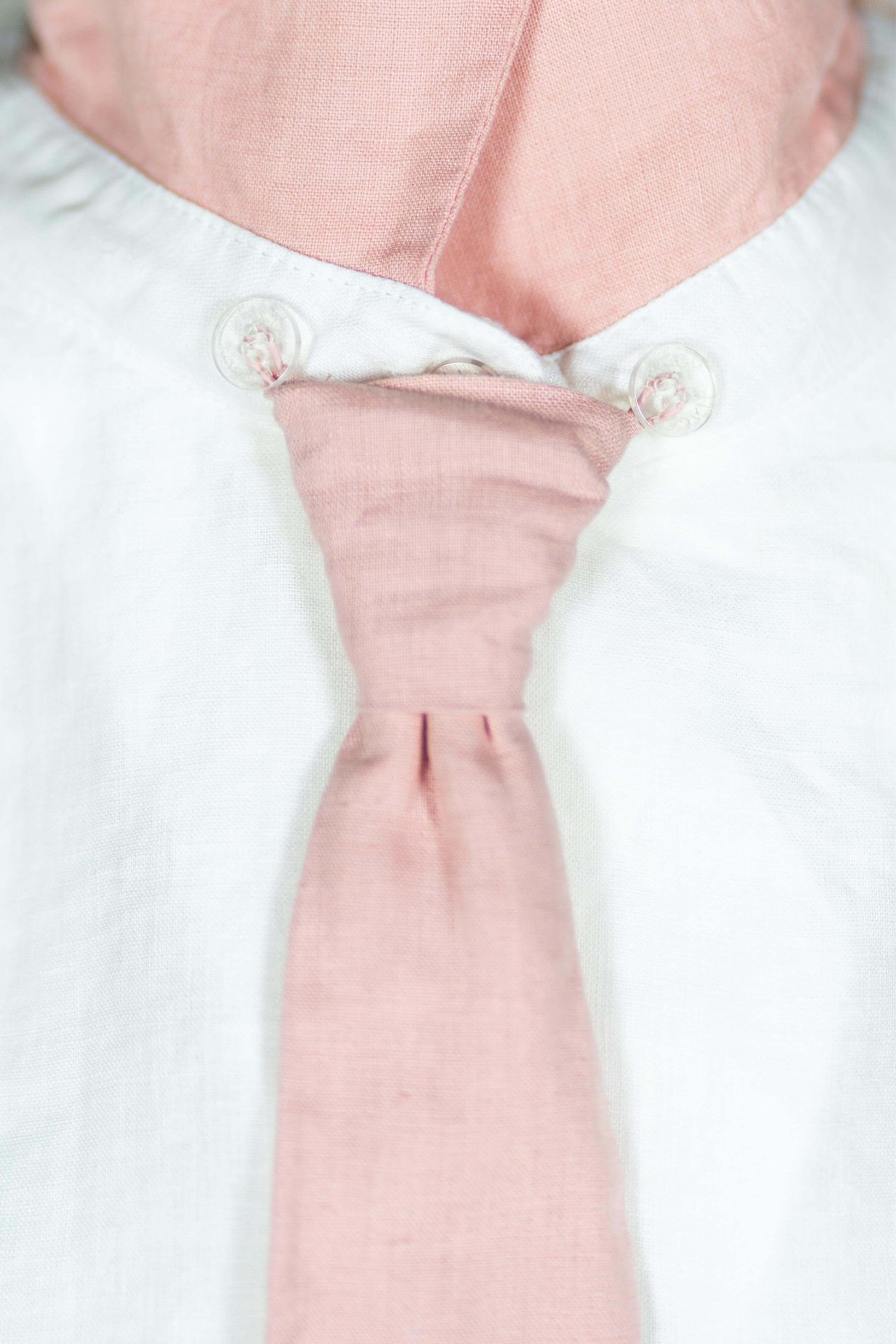 Attachable Tie: Our innovative technique allows you to style the ready-to-wear tie at any time. Simply hang it on the hidden buttons under the collar.