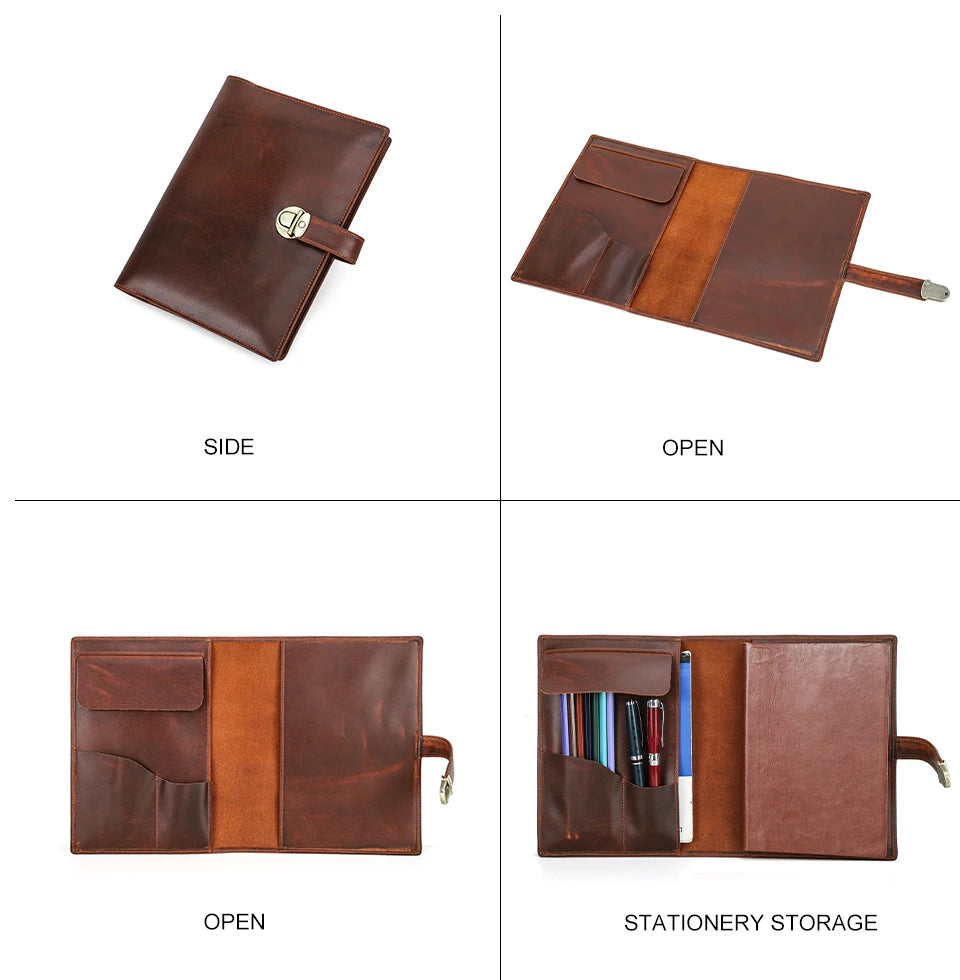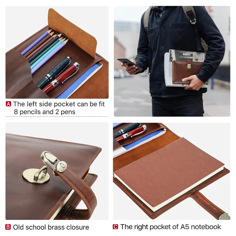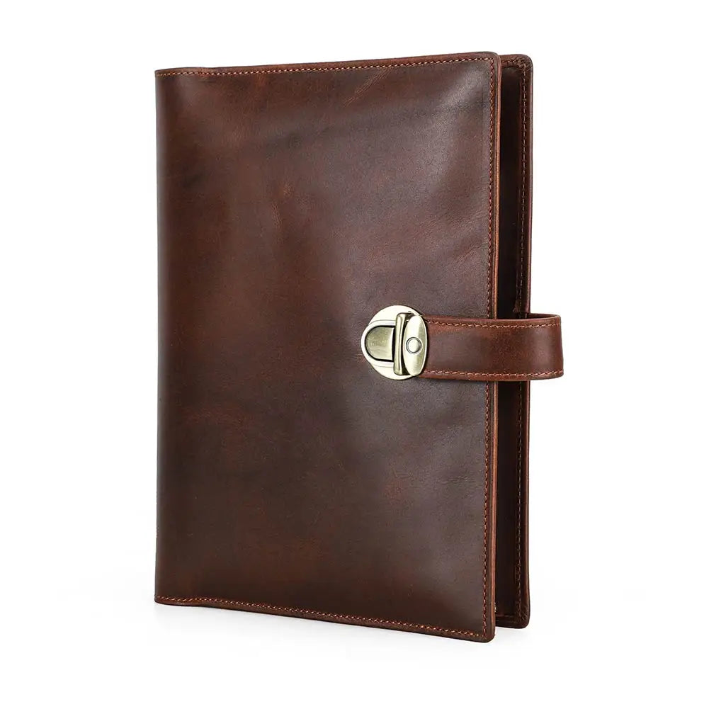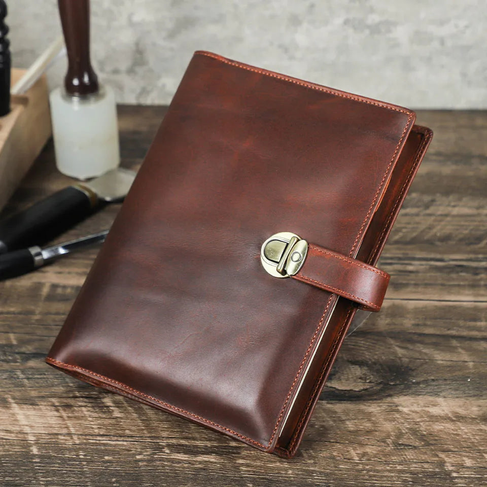 Husă retro de lux din piele naturală pentru caiet A5 cu cataramă metalică – Protecție elegantă și organizare stilată pentru notițele tale