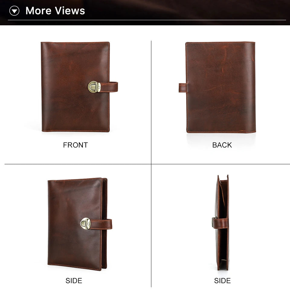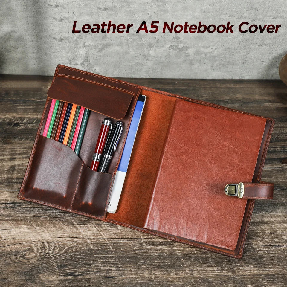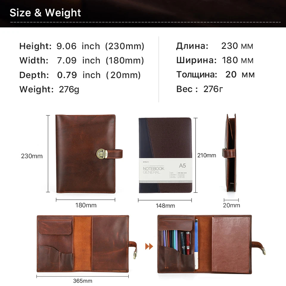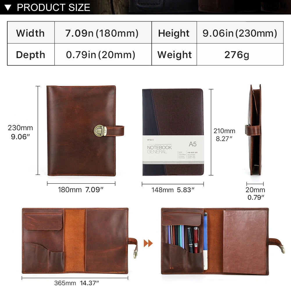 Husă retro de lux din piele naturală pentru caiet A5 cu cataramă metalică – Protecție elegantă și organizare stilată pentru notițele tale