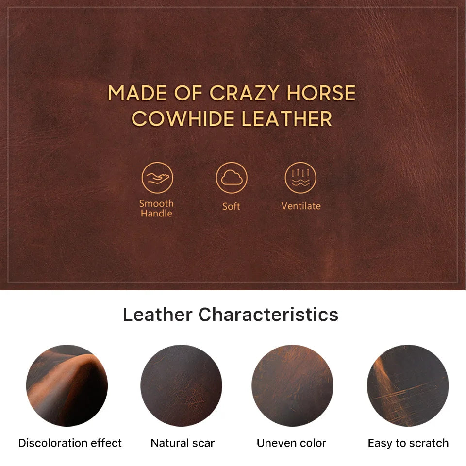 - Piele naturală autentică și durabilă, care dezvoltă o patină atractivă în timp, adăugând caracter oricărui birou sau trusă de călătorie.