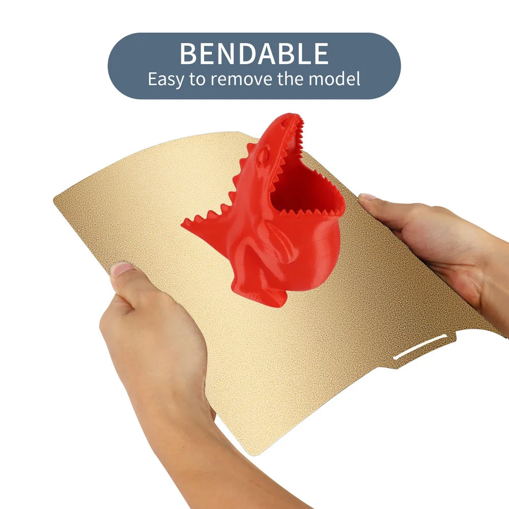 - Potrivit pentru multe filamente comune datorită acoperirii PEI stabile la temperatură și bazei robuste din oțel cu arc.