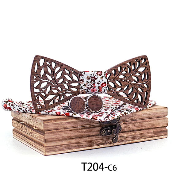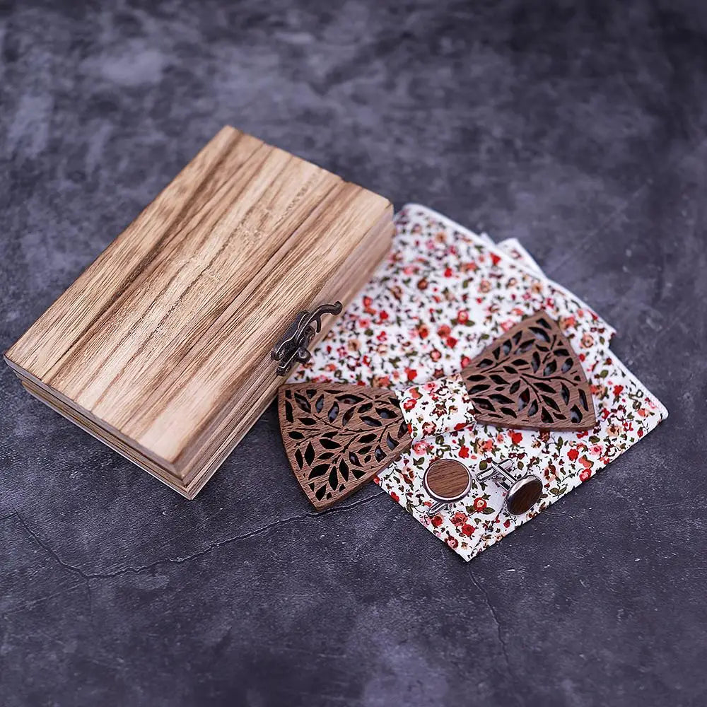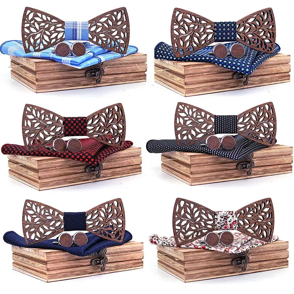 Mahoosive Fashion bărbătesc lucrat manual batiste din lemn și butoni papion din lemn pre-legat papion pentru nuntă petrecere cutie cadou din lemn