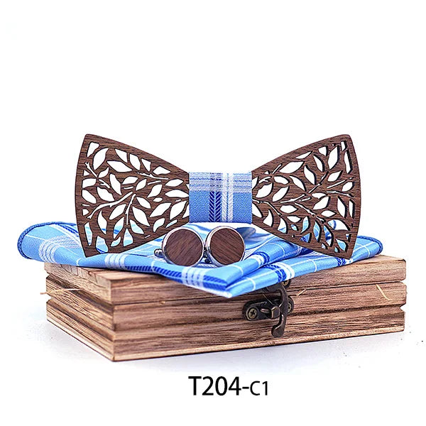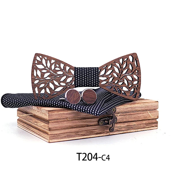 Acest set combină măiestria tradițională cu designul modern și avantajele practice care vă vor îmbunătăți în mod durabil aspectul la ocazii formale și profesionale. Combinația dintre un papion din lemn, o batistă de buzunar asortată și butoni de înaltă calitate oferă un ansamblu armonios, gata de purtat, pentru cei care prețuiesc detaliile, calitatea și stilul.