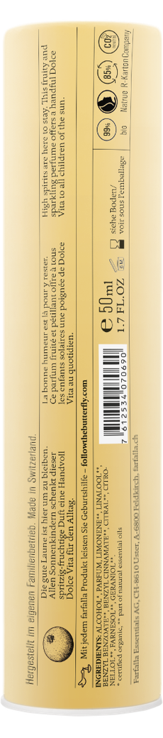 Producător : Farfalla Essentials AG, Florastrasse 18b, CH-8610 Uster, Elveția; www.farfalla.eu