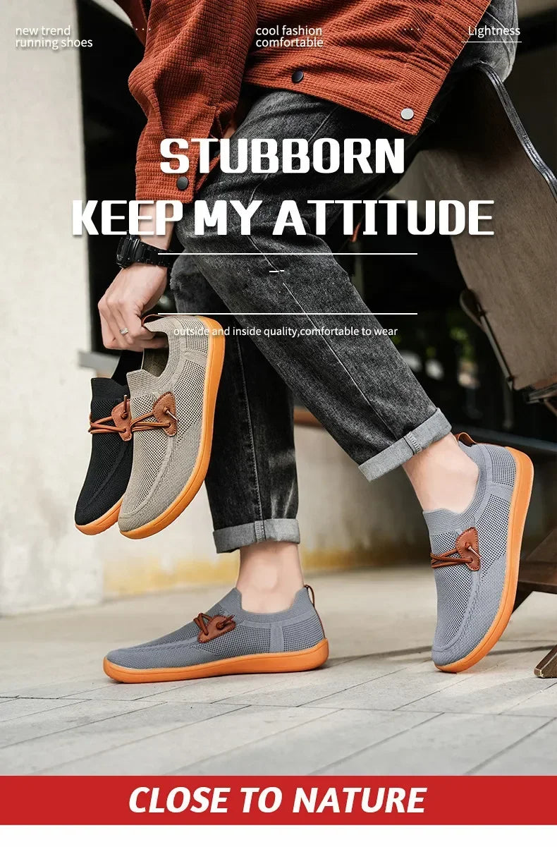 Acești pantofi sport versatili pentru bărbați combină designul minimalist cu materiale respirabile și o talpă fără căderi pentru un echilibru îmbunătățit și mers prietenos cu articulațiile - ideali pentru purtarea zilnică, călătorii și activități ușoare în aer liber.