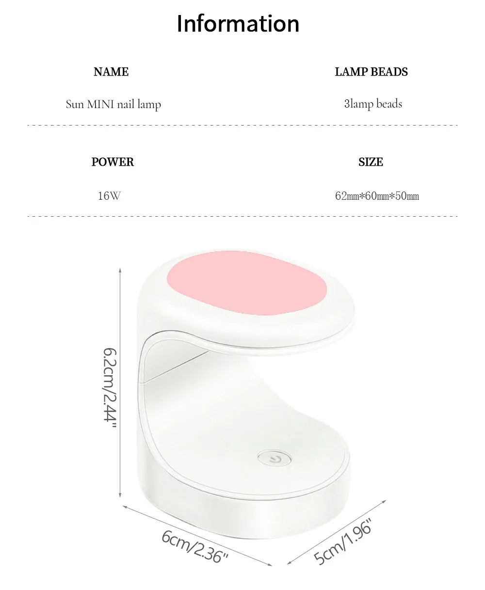 Lampă de unghii mini 16W UV LED cablu USB – Uscare rapidă și uniformă a unghiilor pentru rezultate profesionale