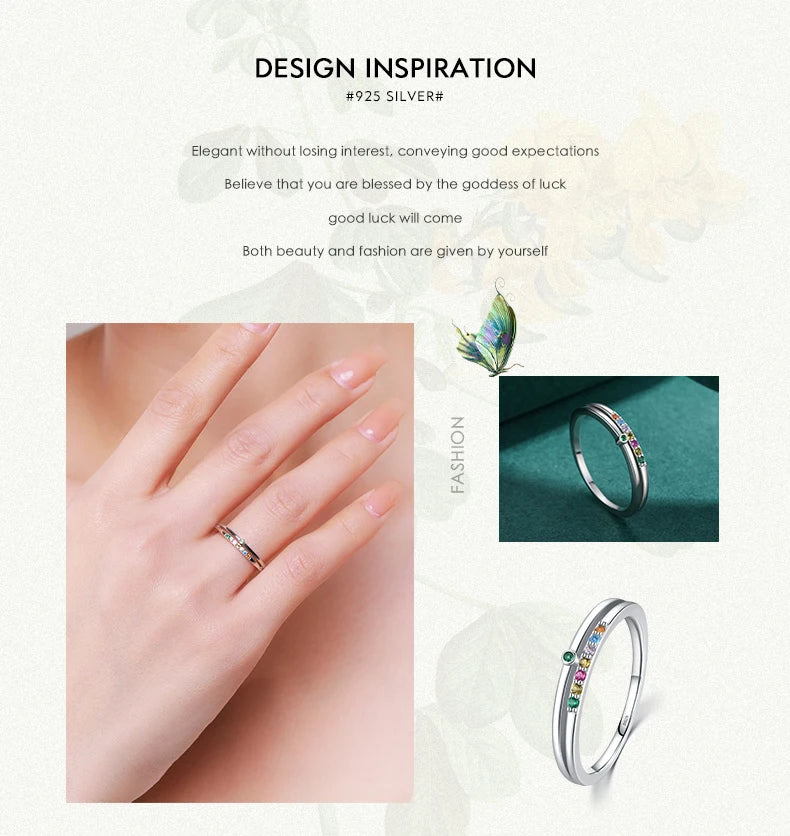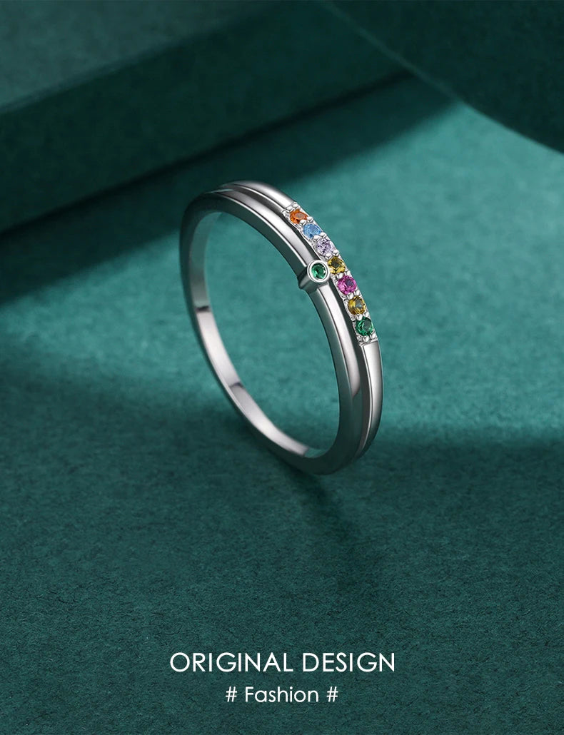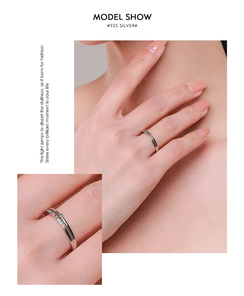 Inel MODIAN din argint 925 cu zirconiu cubic curcubeu, strat dublu – Design elegant cu mai multe straturi pentru un stil modern și versatil