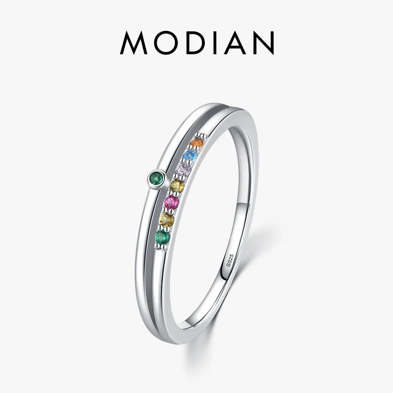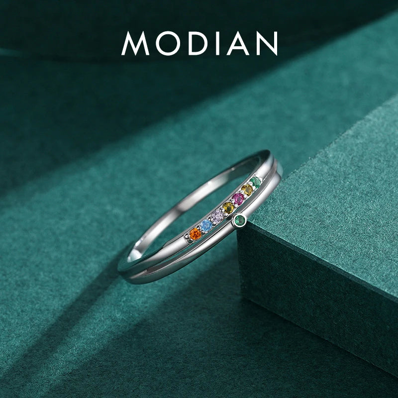 MODIAN 925 Sterling Silver Rainbow Cubic Zirconia Dublu Strat Inel Pentru Femei Design Geometric Inel Moda Bijuterii Fine Cadouri