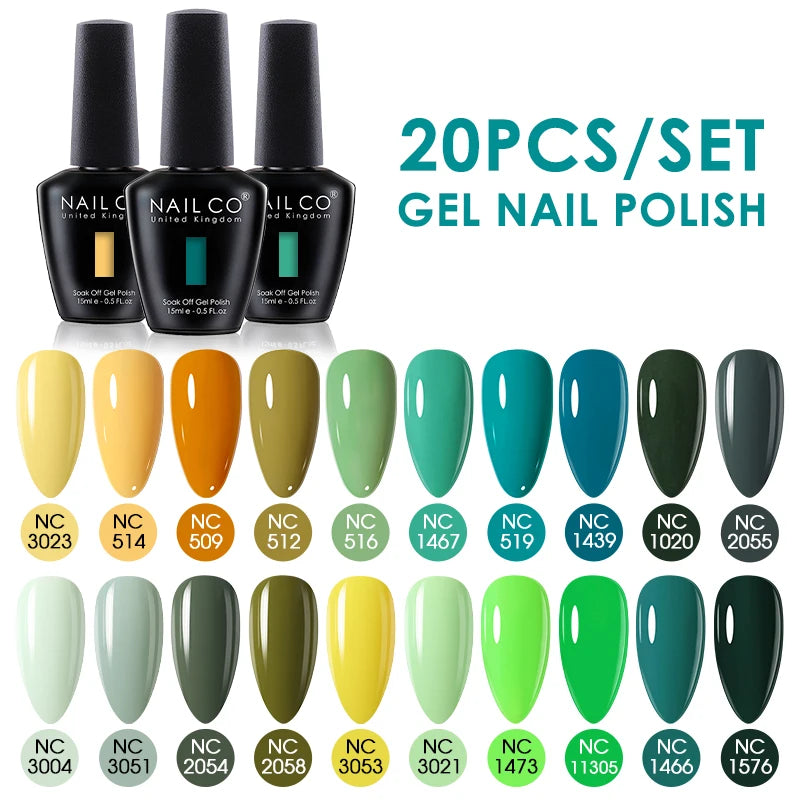 Set de 20 de ojă gel UV NAILCO 15ml – Culori de lungă durată pentru nail art profesională