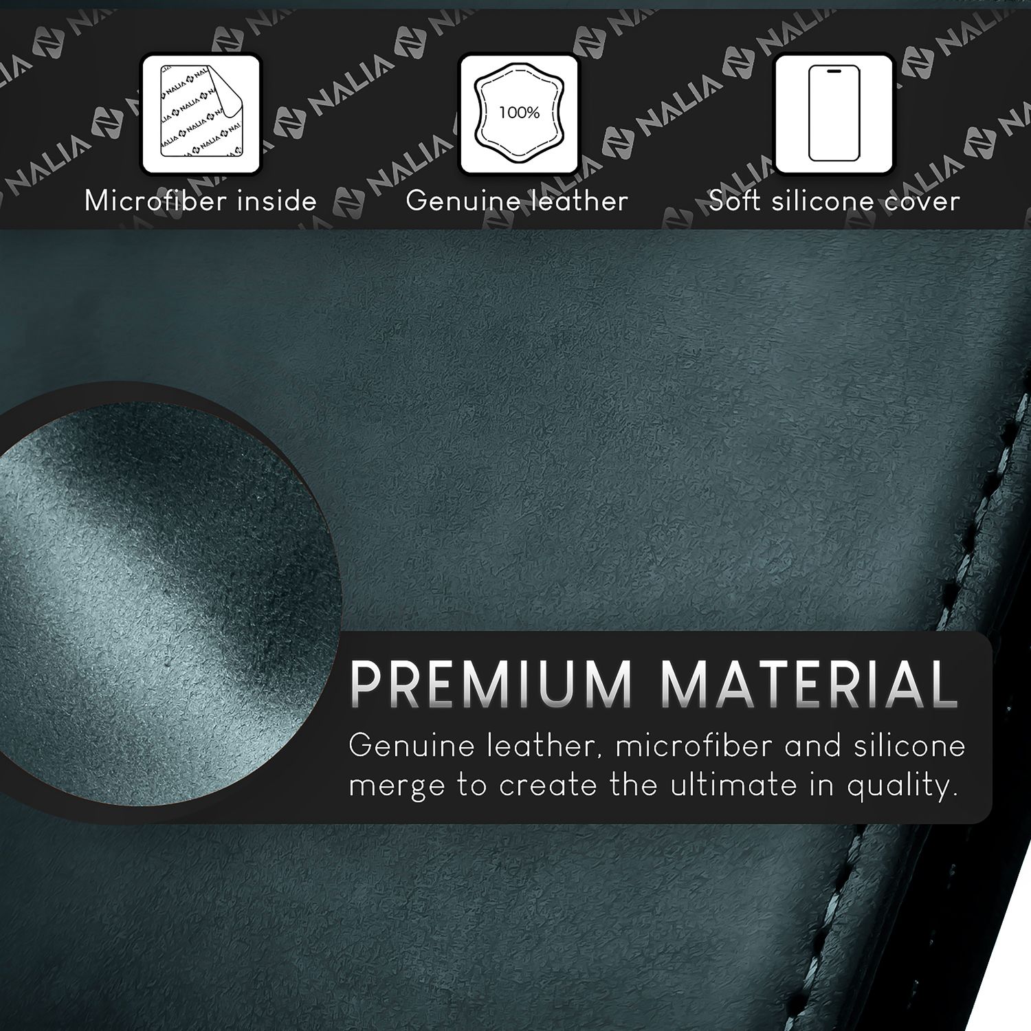 Husă NALIA din piele naturală cu flipcase Pro de lux pentru iPhone 15 Plus - Suport cu protecție RFID din piele de vacă