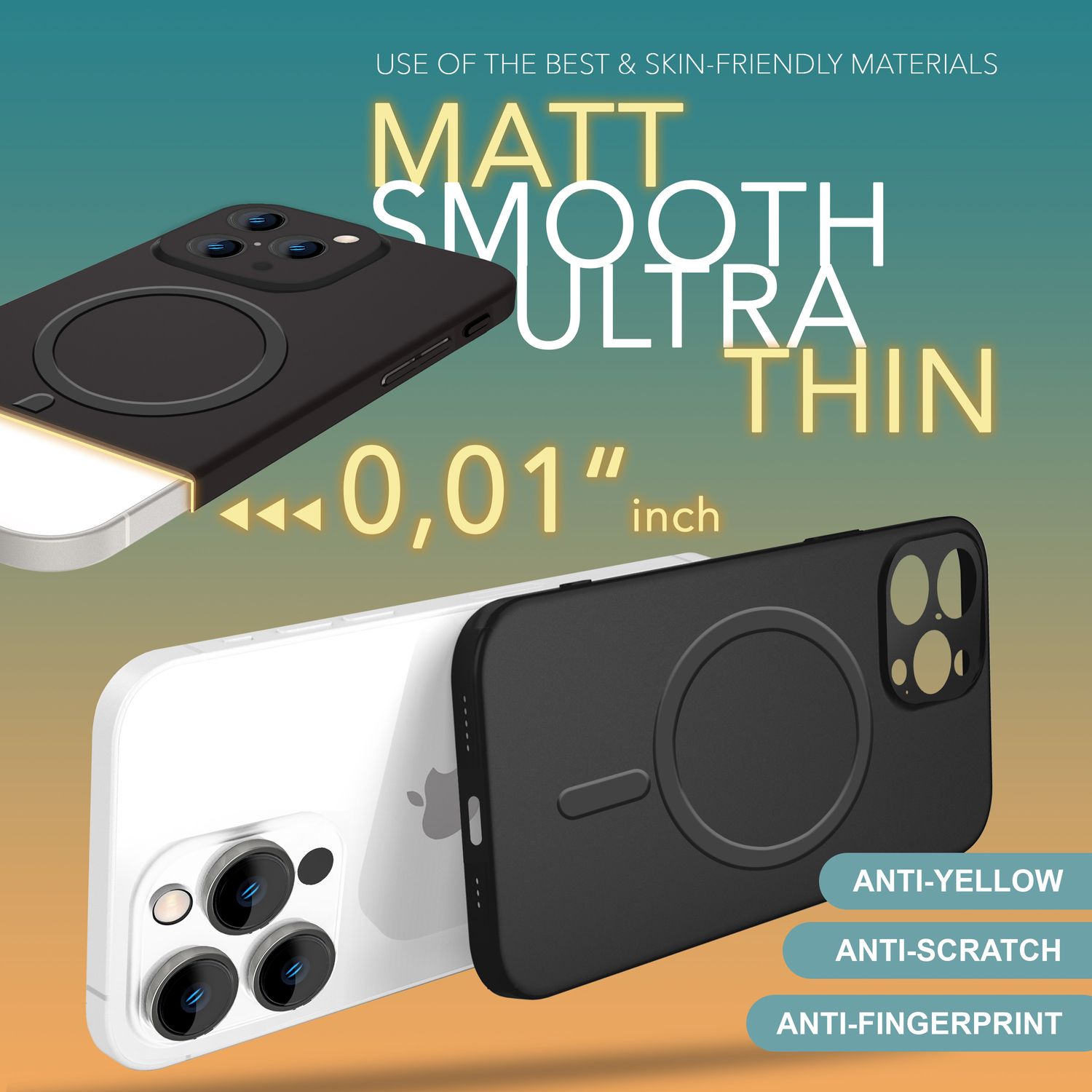 Carcasa Thinix MagPower oferă un design minimalist fără compromisuri. Cu o grosime de doar 0,3 mm, menține profilul subțire al smartphone-ului tău, în timp ce inelul magnetic asigură compatibilitate completă cu MagSafe – pentru încărcare wireless și accesorii precum încărcătoare MagSafe sau suporturi auto.