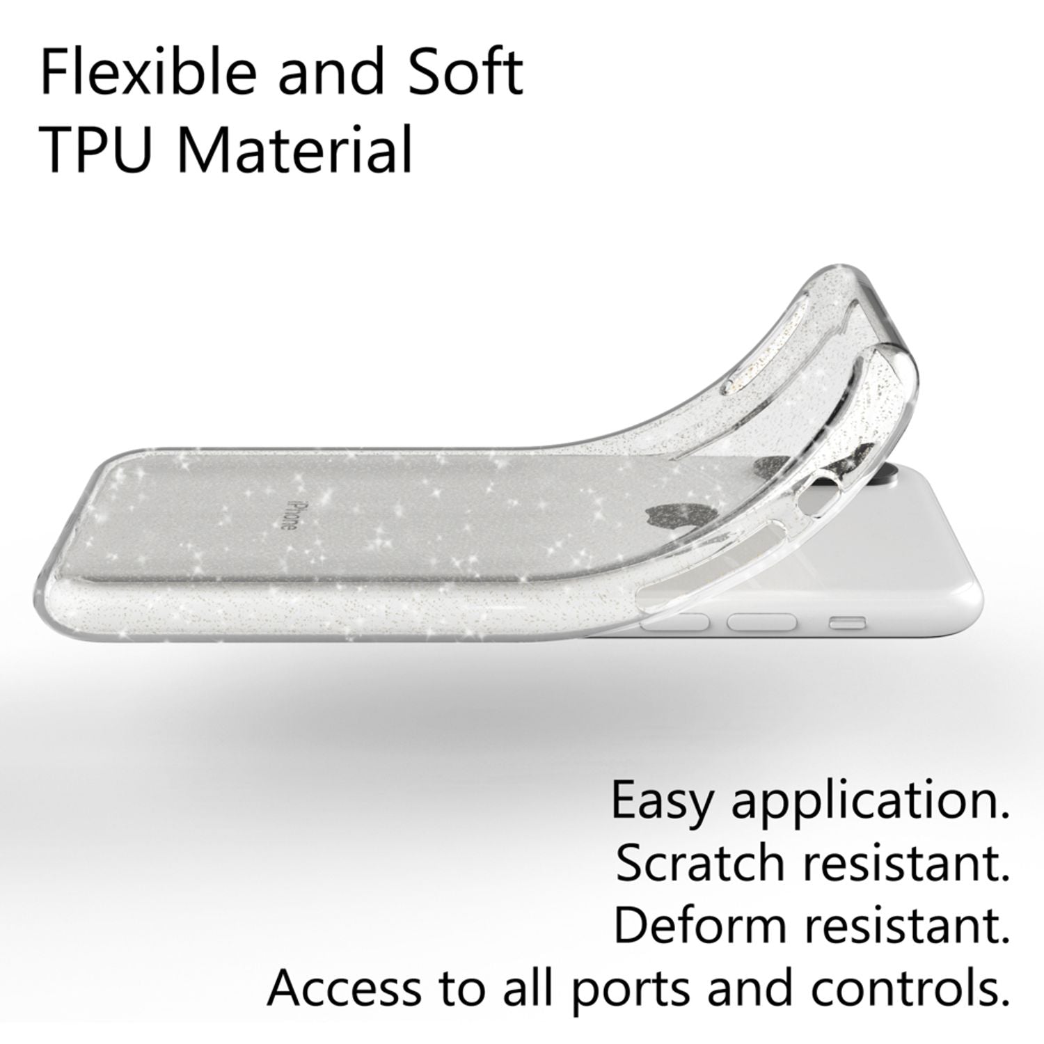 - Material: TPU de înaltă calitate, absorbant de șocuri, cu particule de sclipici integrate