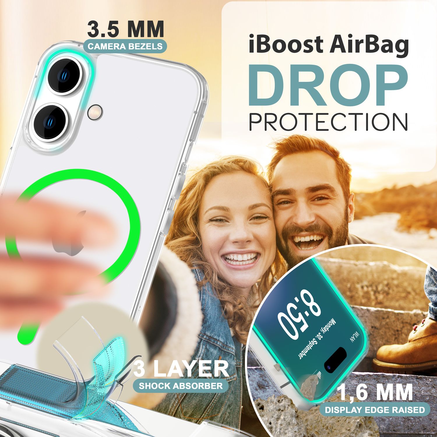 - Spatele transparent din acril pune în valoare finisajul original al iPhone-ului tău 16 și își păstrează claritatea pe termen lung datorită stratului anti-îngălbenire.