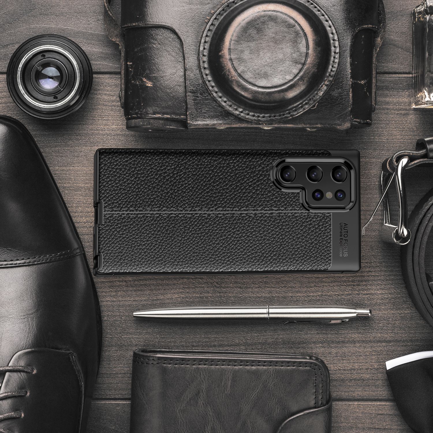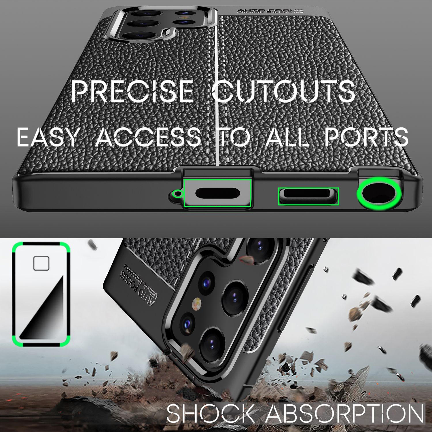 Husă NALIA cu aspect de piele - Dimensiune potrivită pentru Galaxy S22 Ultra, silicon TPU, anti-amprentă