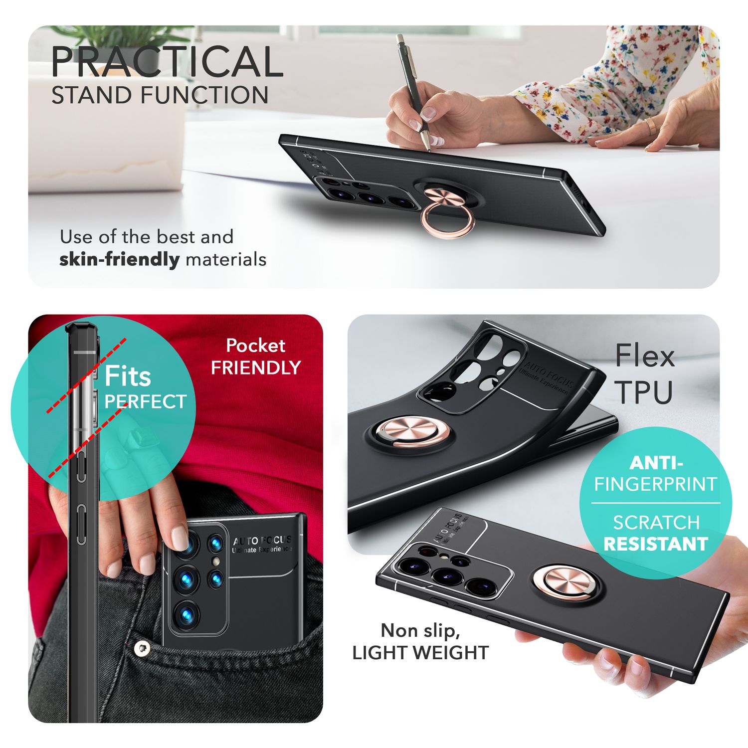 - 1 x Husă NALIA Grip360 Ring pentru Galaxy S24 Ultra, neagră mată