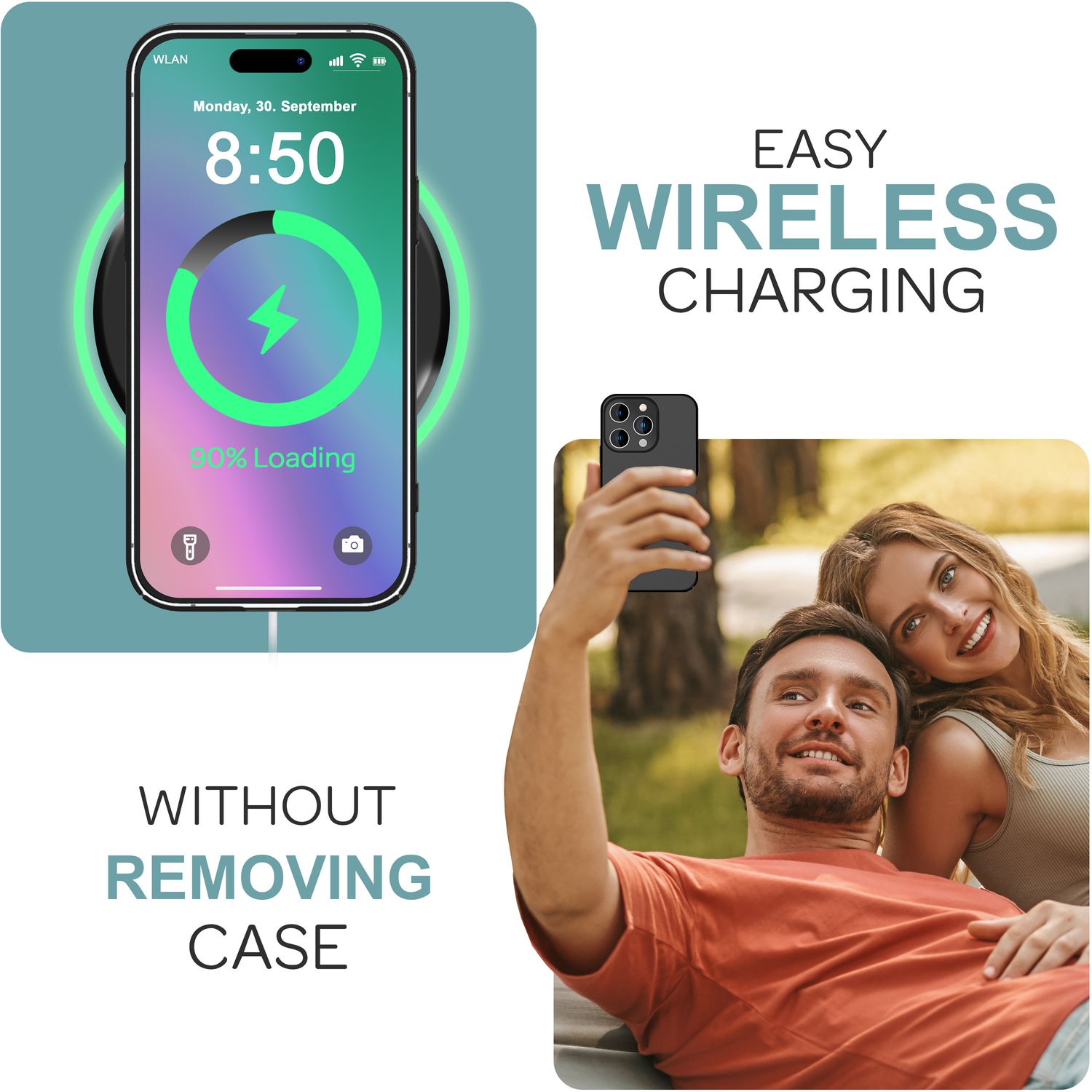 - Compatibil cu încărcarea wireless — nu este necesară scoaterea carcasei pentru încărcarea wireless.