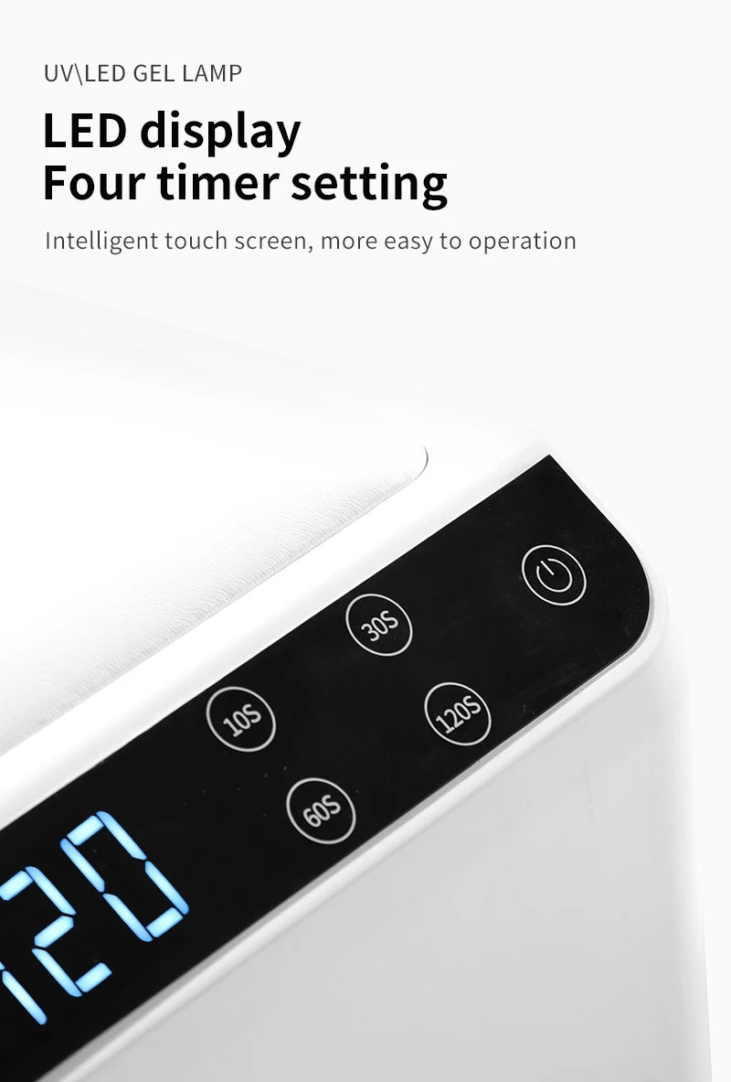 Această lampă pentru unghii combină tehnologia profesională cu un design orientat către utilizator: polimerizarea puternică, operarea ușoară și confortul superior asigură fluxuri de lucru eficiente și rezultate impresionante la fiecare aplicare. Indiferent dacă serviți mai mulți clienți pe zi sau doriți să vă perfecționați manichiura personală acasă, acest dispozitiv este un plus fiabil și versatil pentru echipamentul dvs. de înfrumusețare. Cu construcția sa robustă, certificările de siguranță testate și materialele ușor de întreținut, investiți într-un instrument care combină performanța cu confortul utilizatorului.