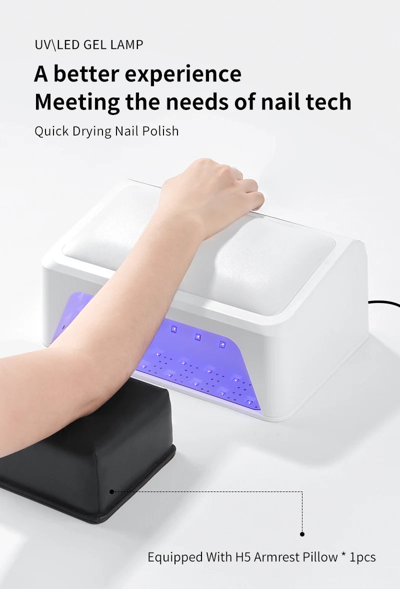 Lampă de unghii UV LED 2 în 1 cu pernă pentru braț pentru ojă gel, uscător de unghii cu lumină 72W și 4 temporizatoare pentru salon sau uz casnic