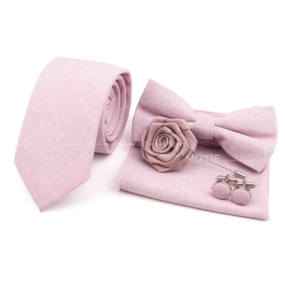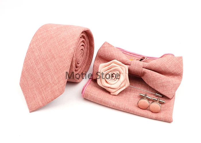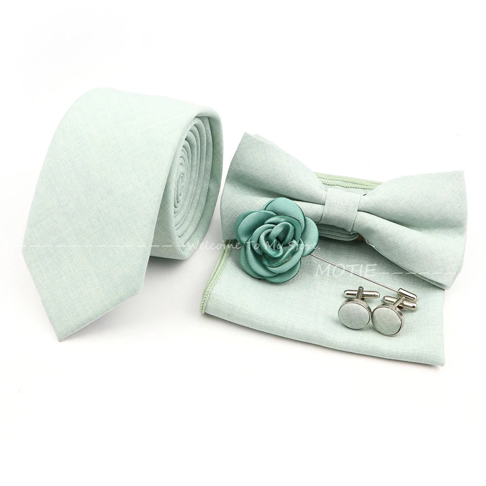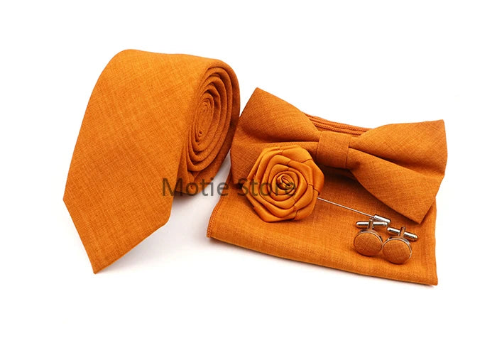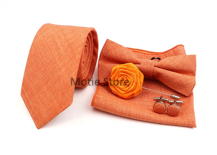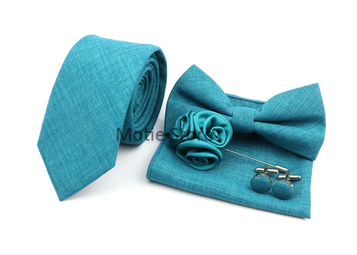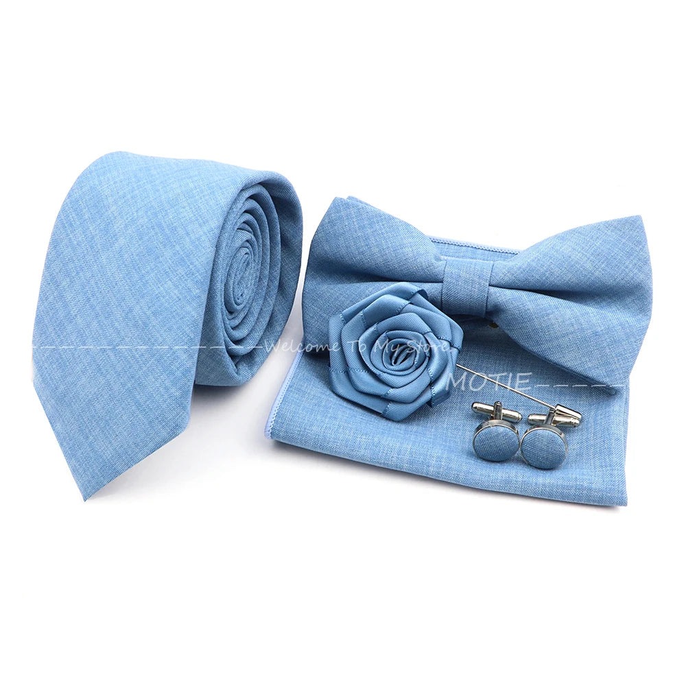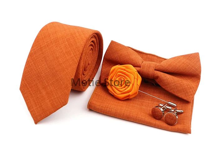 - Conținutul setului: Batistă de bumbac (fiecare culoare), papion, butoni
