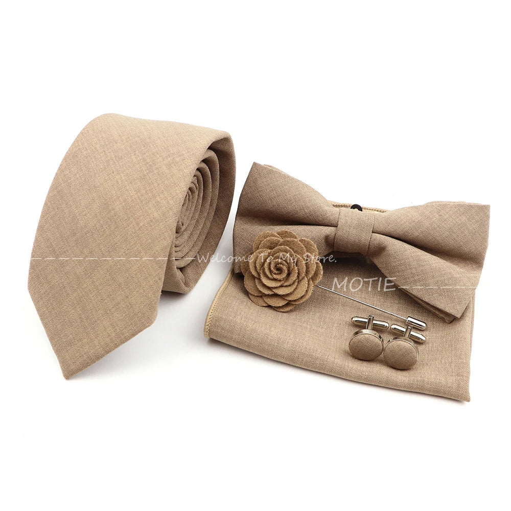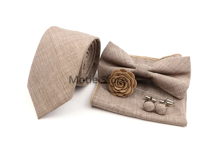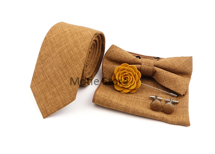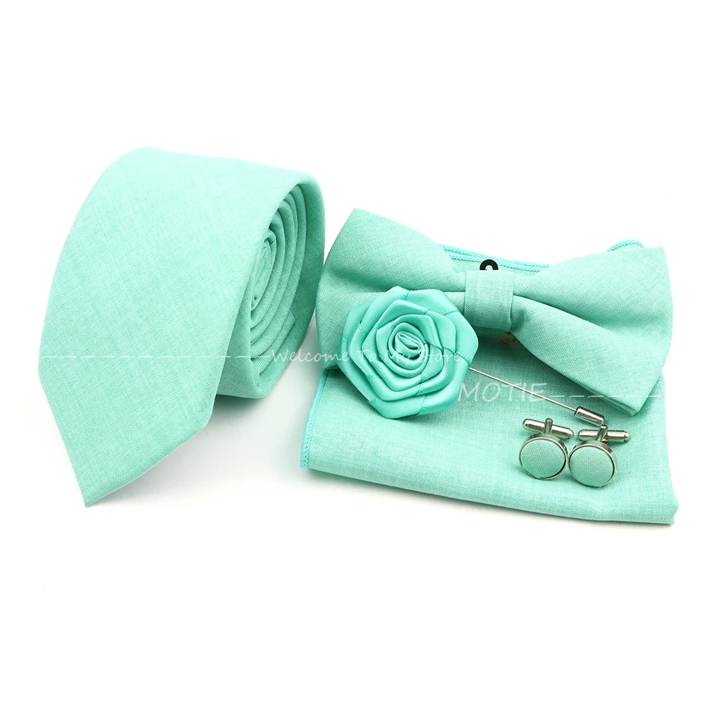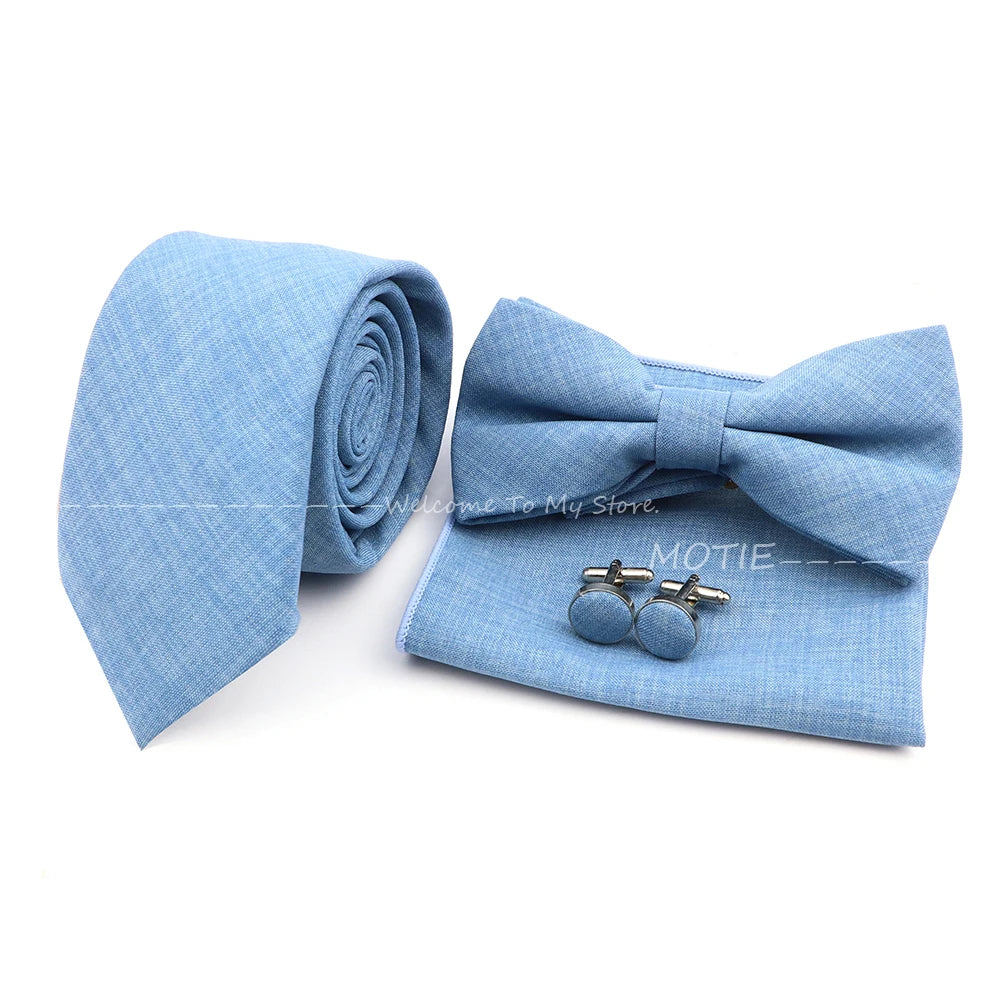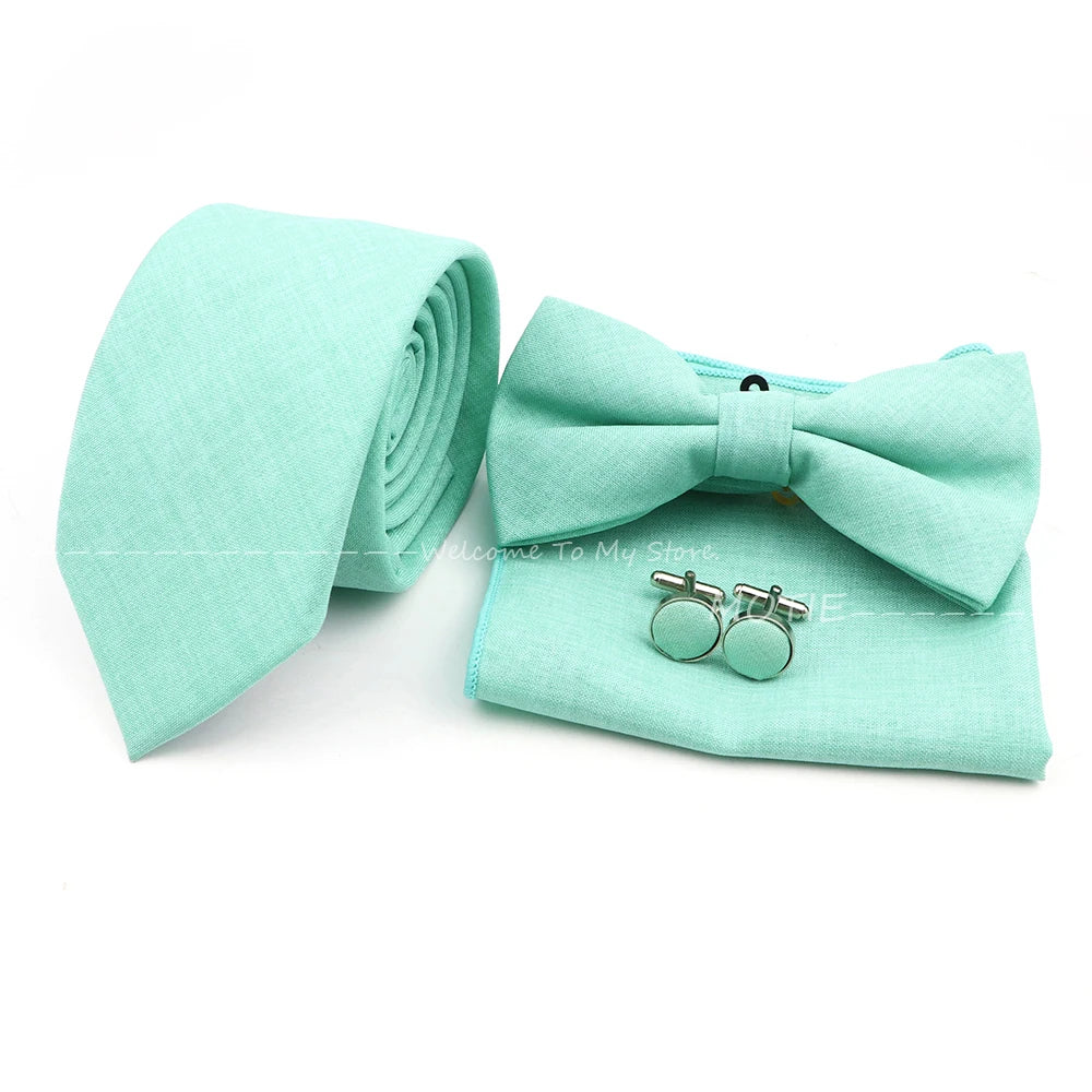 Set de accesorii bărbătești cu design nou, 27 de culori: batistă clasică din bumbac, butoni, papion pentru nuntă, petrecere, cadouri