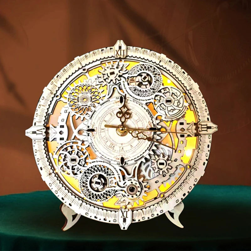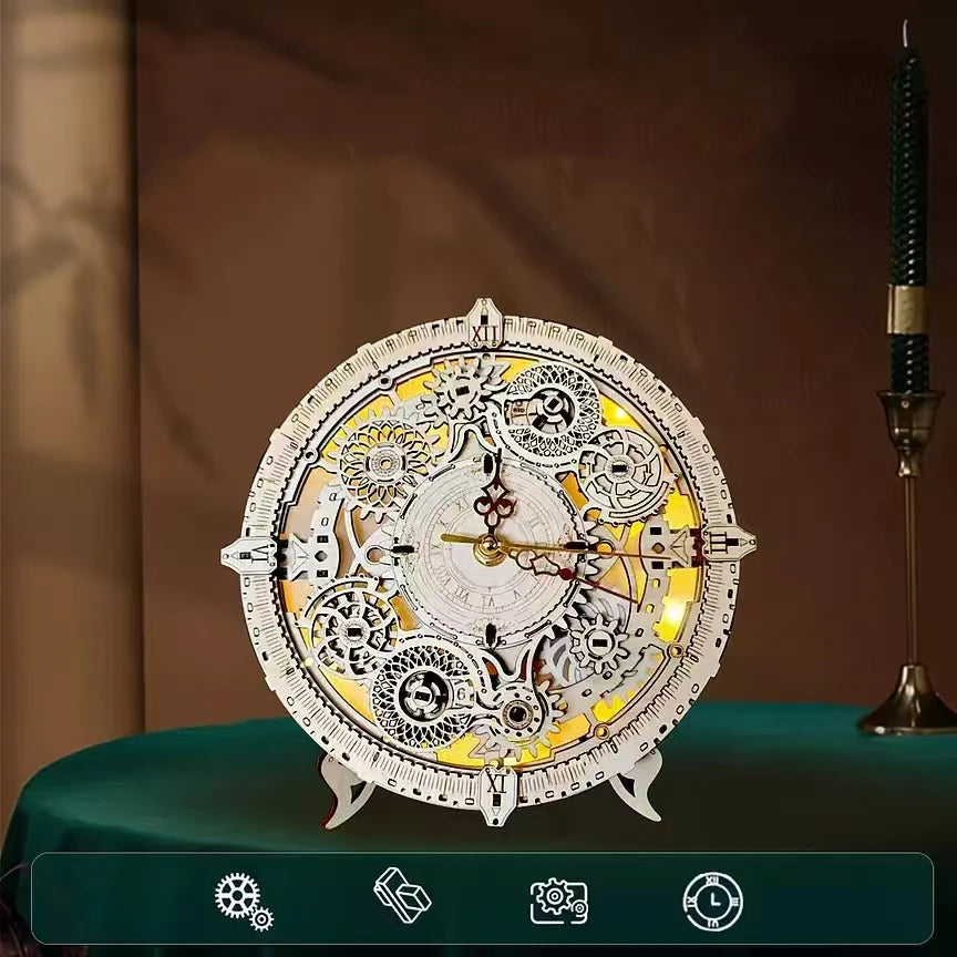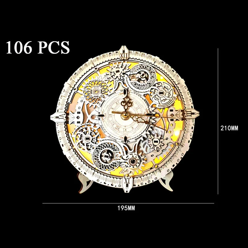 Kit ceas DIY 2025: NOU Model de construcție din lemn - Puzzle-uri 3D cu lumini, colecție de cadouri de ziua de naștere pentru prieteni
