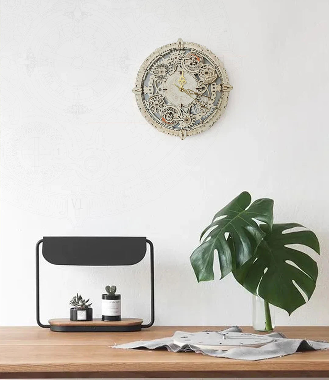 - Material: Lemn de înaltă calitate (tăiat cu laser) cu elemente de fixare metalice