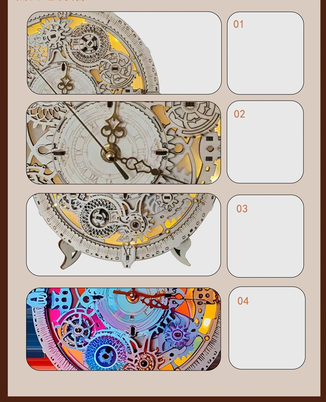 Kit ceas DIY: Machetă din lemn cu ceas mobil și iluminare LED – Idee de cadou creativ pentru pasionați
