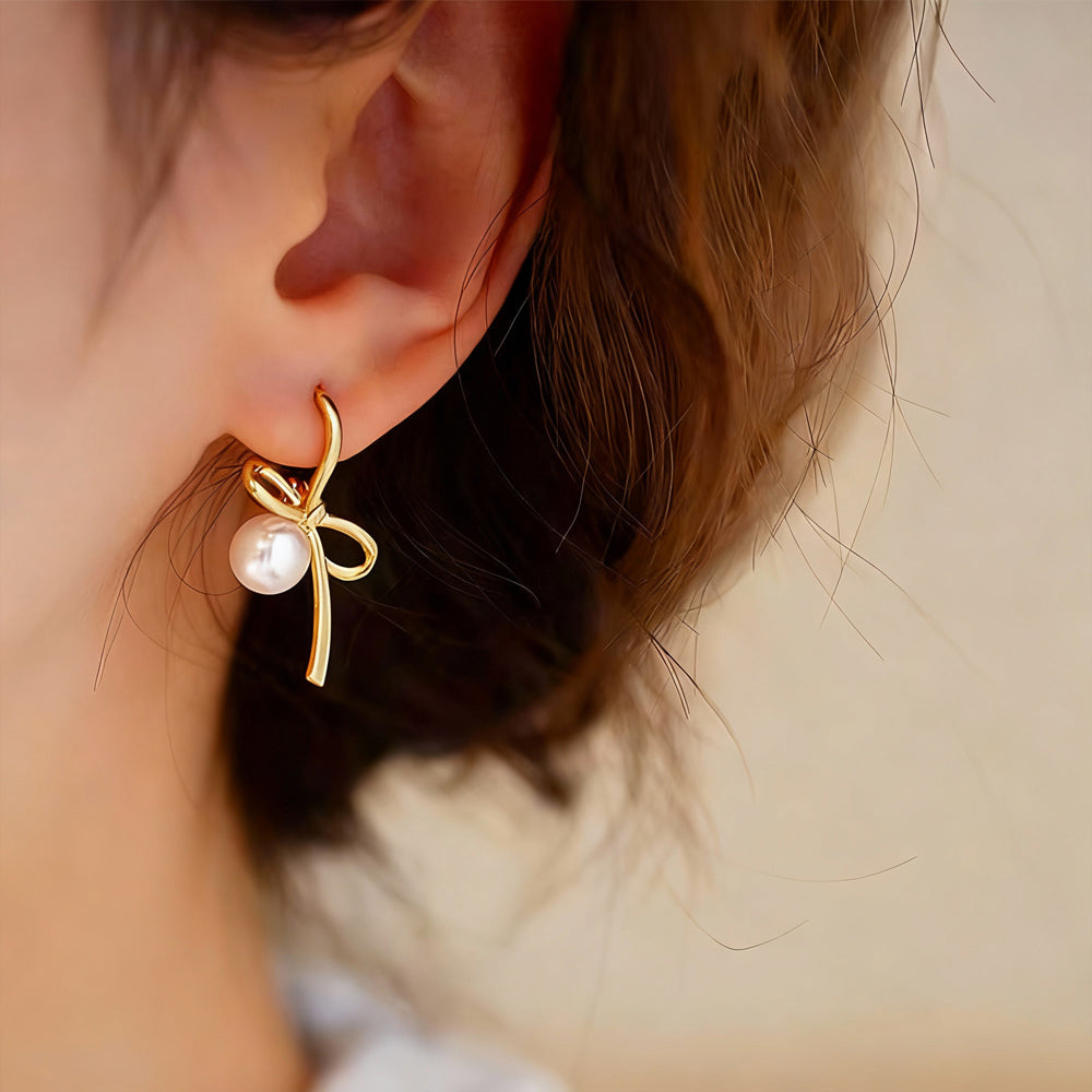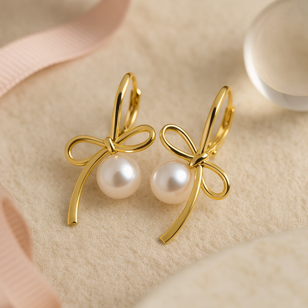 Cercei din argint 925, cercei rotunzi cu perlă și fundă
