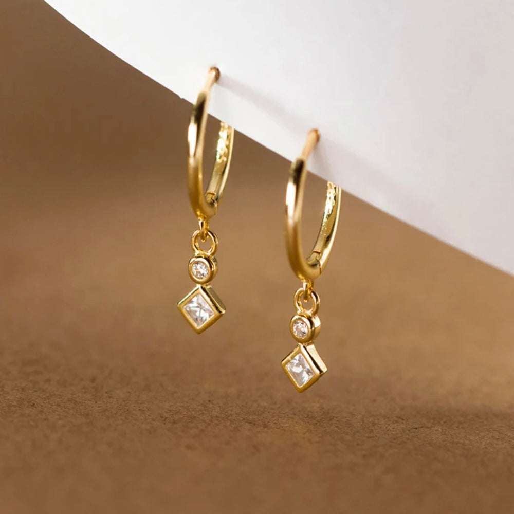 Cercei din argint 925, model cerc-pătrat, 2 cm
