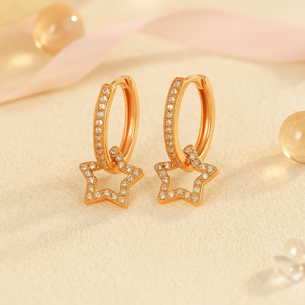 Cercei din argint 925, cercei rotunzi în formă de stea, 2,2 cm